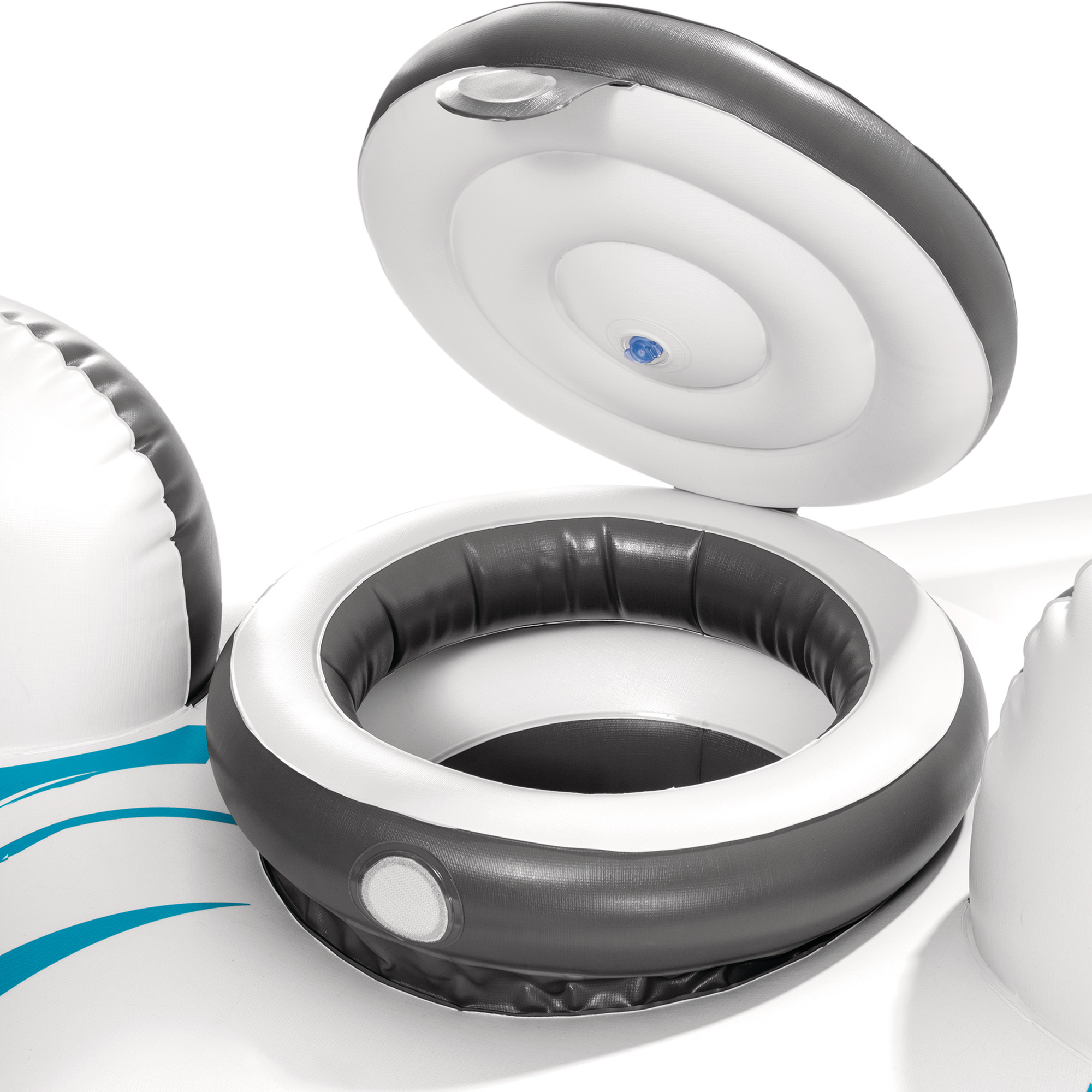 Drift along the water in complete relaxation with the River Run 2 Blue Rapids Inflatable Water Tube! This double-lounger tube offers ultimate comfort with backrests and a mesh bottom for a leisurely float. Stay refreshed with its large built-in cooler and 2 cup holders. Safety is ensured with 5 air chambers, while easy connectors allow seamless attachment to other Intex River Run floats! Get ready to relax and enjoy the water in ultimate comfort and convenience!