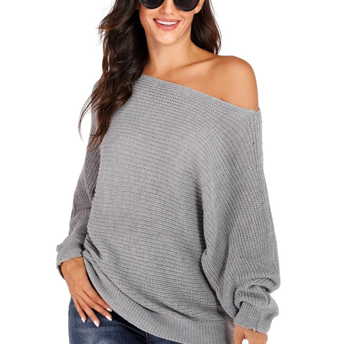 Irregular Bat Sleeve Sweater Grey – L – Grey L