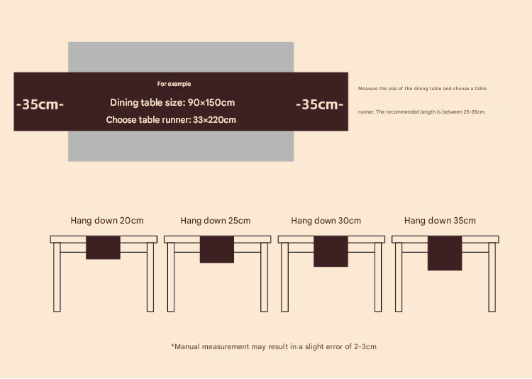 • Perfect Size: Measures 33cm x 160cm to fit a variety of table sizes.