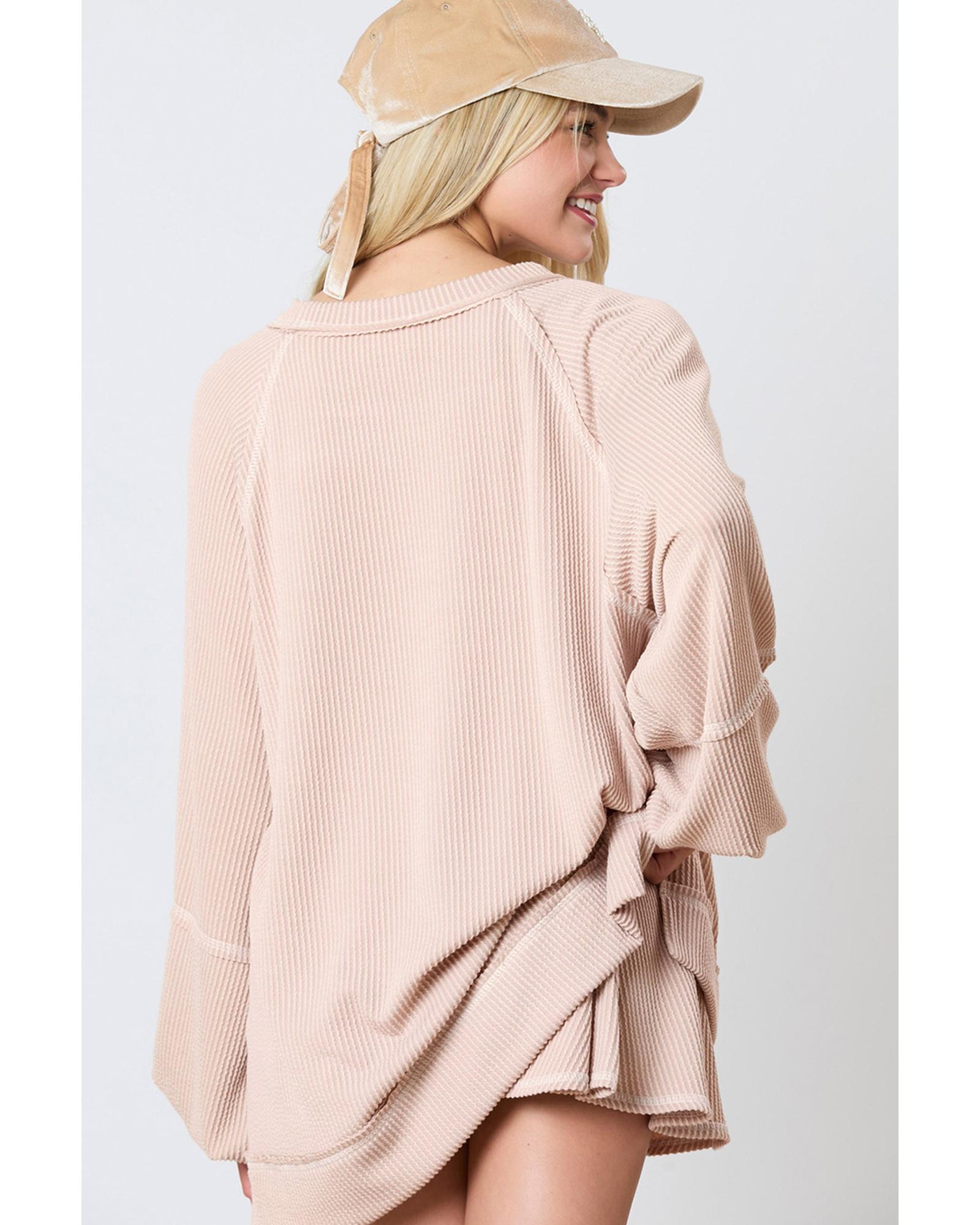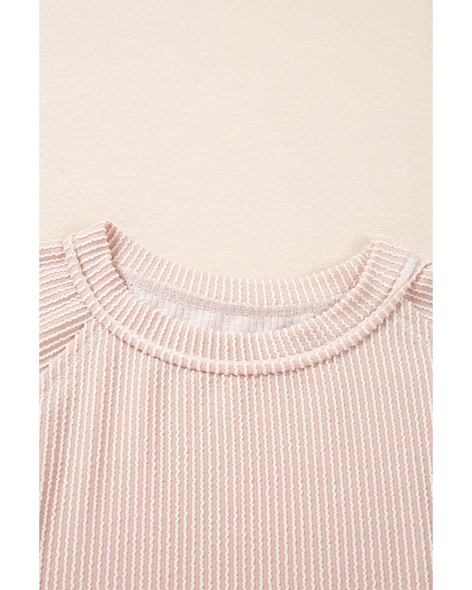 Sky Blue Stripe Knitted Short Sleeve Top and Drawstring Shorts Set - M Original price was: $74.99.Current price is: $40.99.