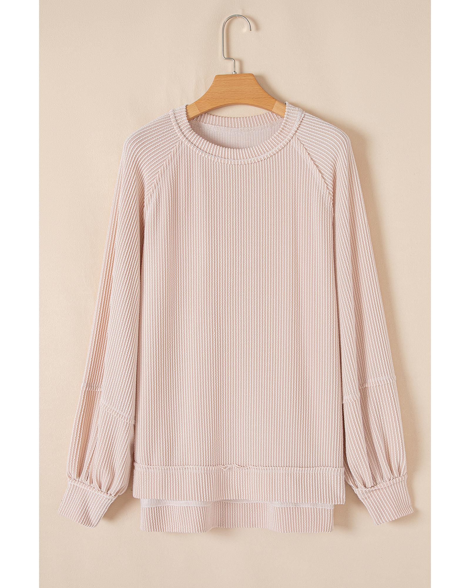 Jet Stream Corded Lantern Sleeve Top High Waist Ruffled Mini Skirt Set – M