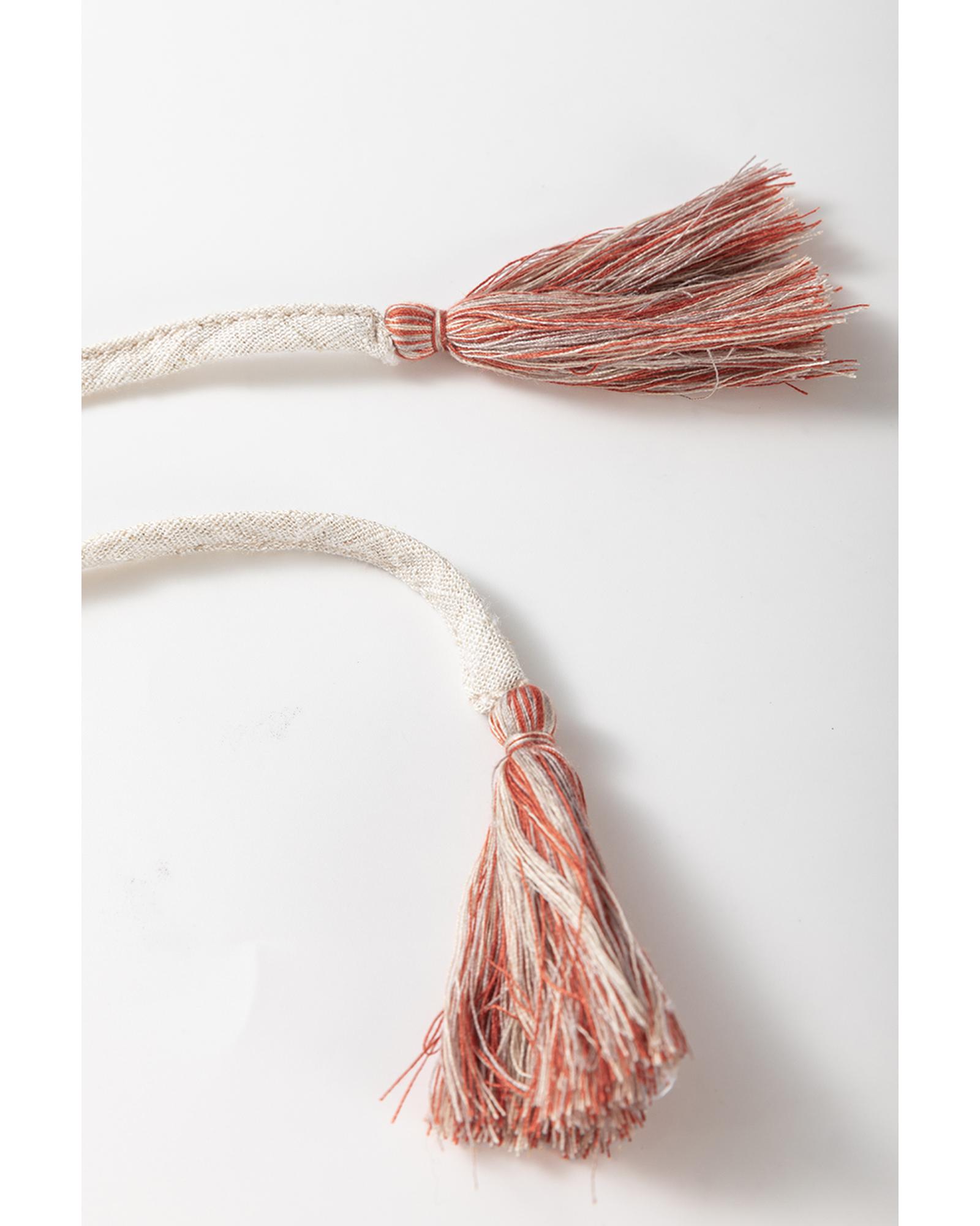 Jet Stream Geometric Embroidered Short Sleeve Tassel Tied V Neck Blouse – M