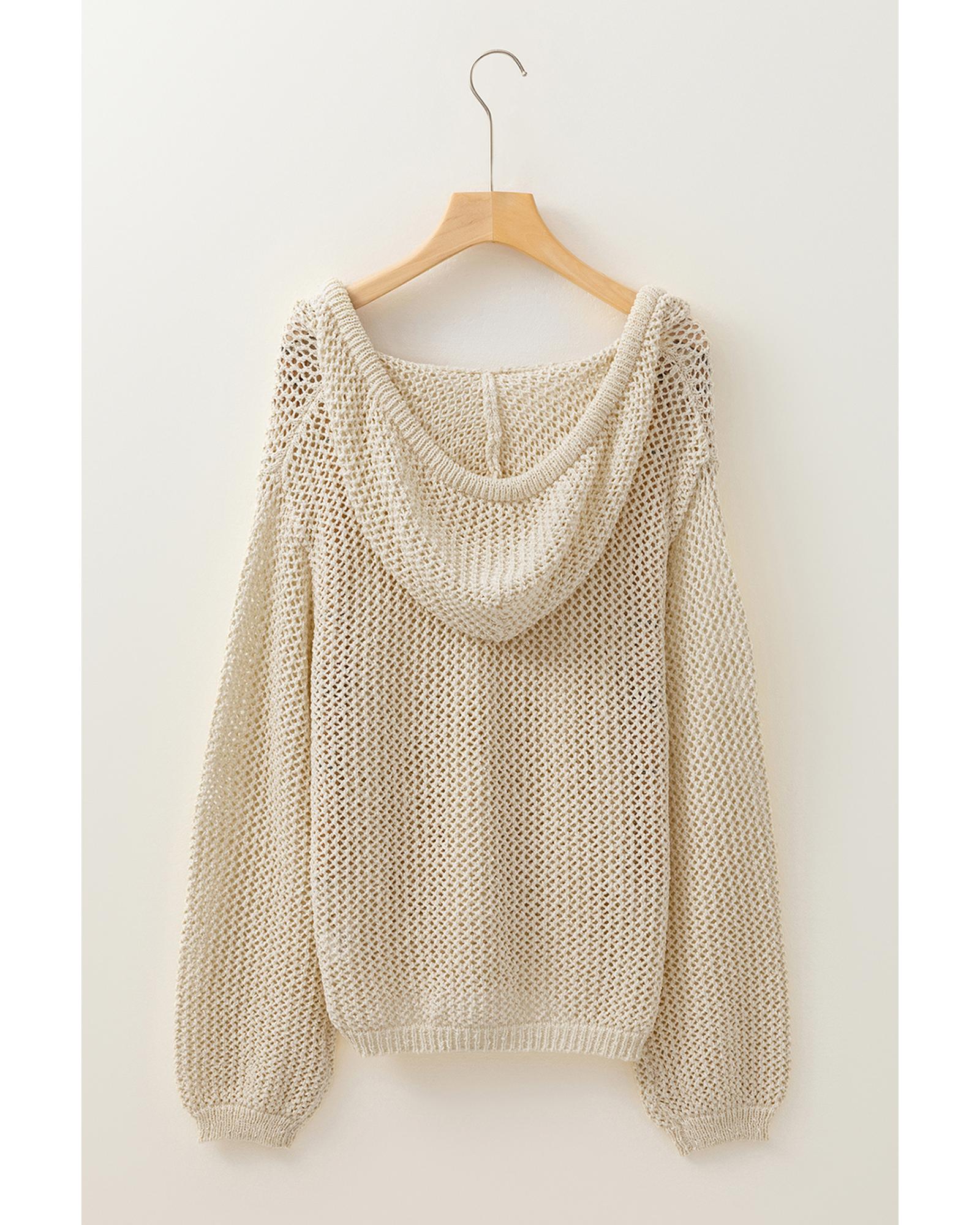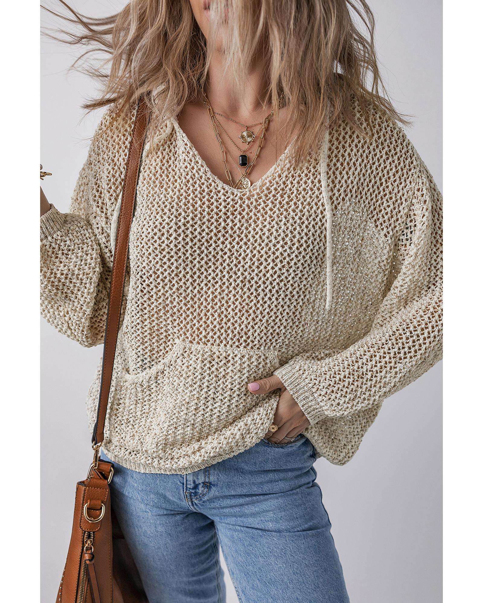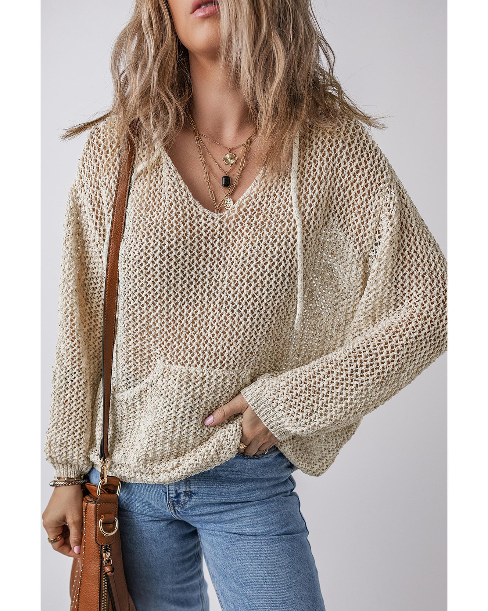 Jet Stream Hollow-out Kangaroo Pocket V Neck Hooded Sweater – XL
