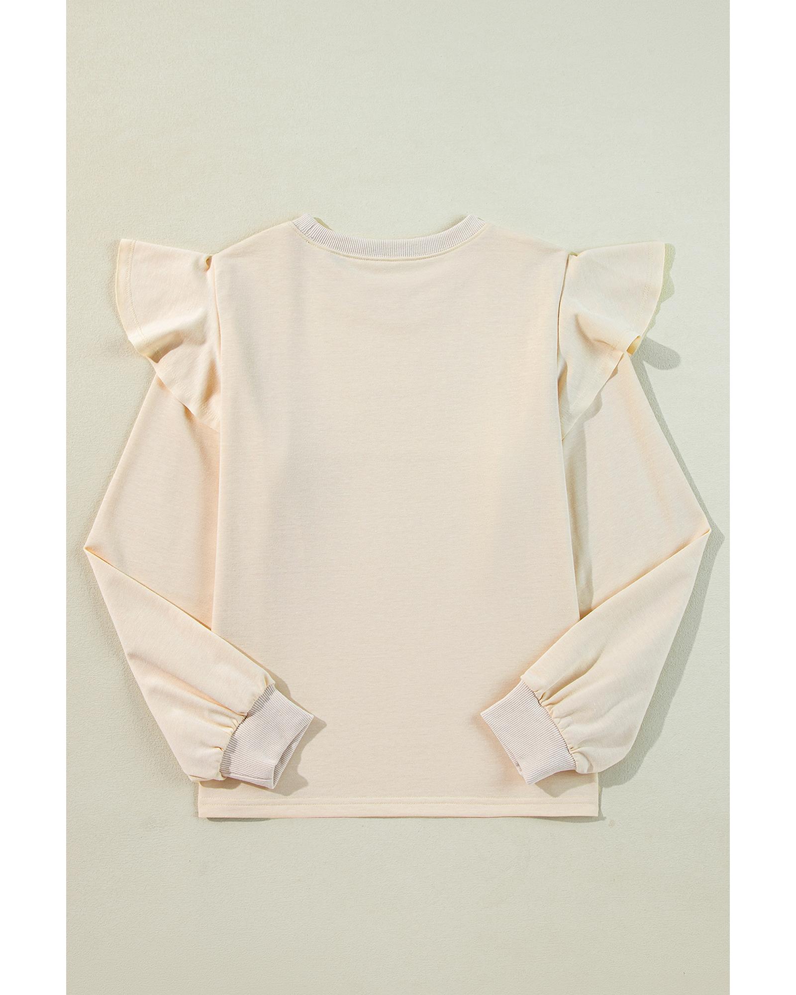 Jet Stream Solid Color Ruffled Shoulder Long Sleeve Blouse – S