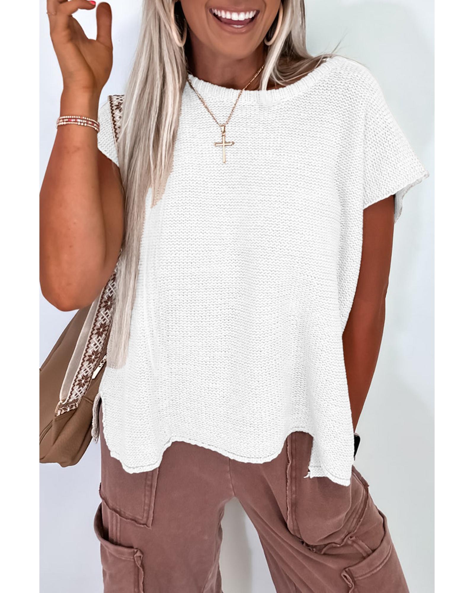 Jet Stream Solid Color Sweater Tee with Side Slits – L