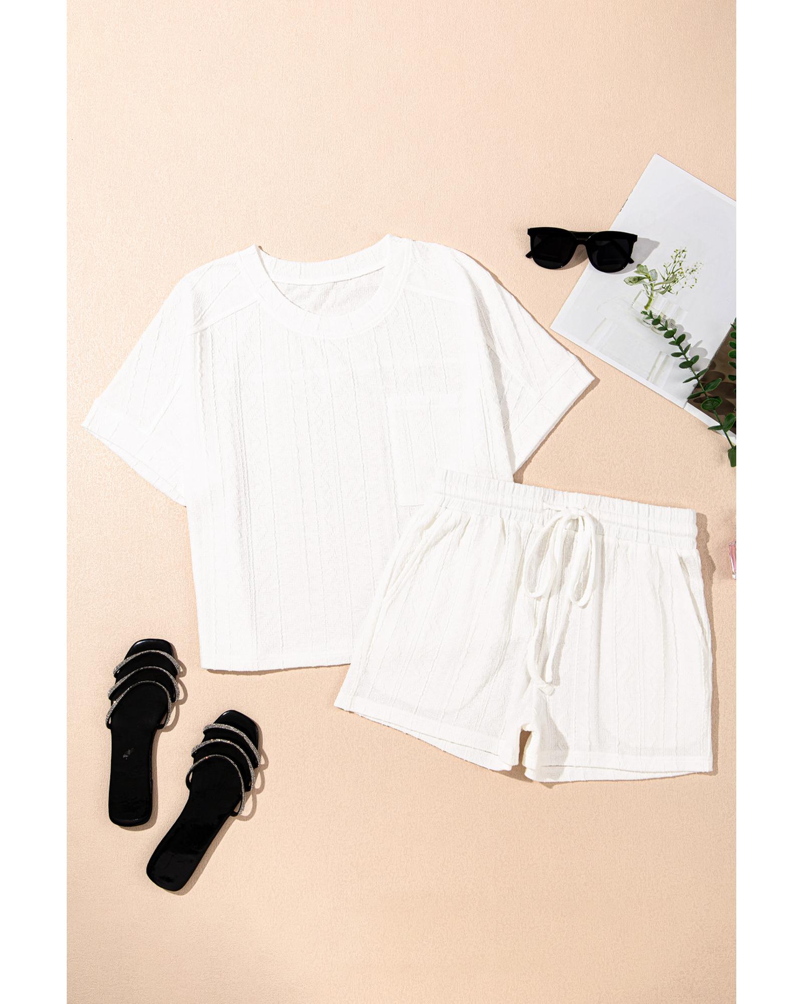 Jet Stream Textured Patched Pocket Short Sleeve Top Drawstring Shorts Set - S