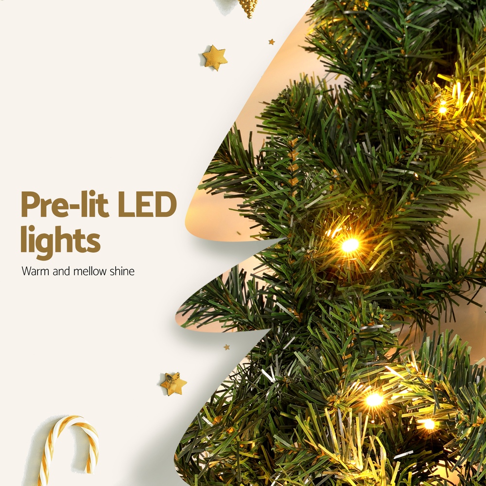 Introducing the Jingle Jollys 20m Green Prelit Garland, designed to enhance your holiday decorations with ease and elegance. Crafted from non-toxic, odour-free materials, this garland ensures a safe and pleasant environment. Adorned with warm LED light bulbs, it emits a gentle glow, perfect for creating a cosy and inviting atmosphere indoors or outdoors. Ideal for adding festive charm to mantels, staircases, or doorways, this garland combines practicality with festive flair.
