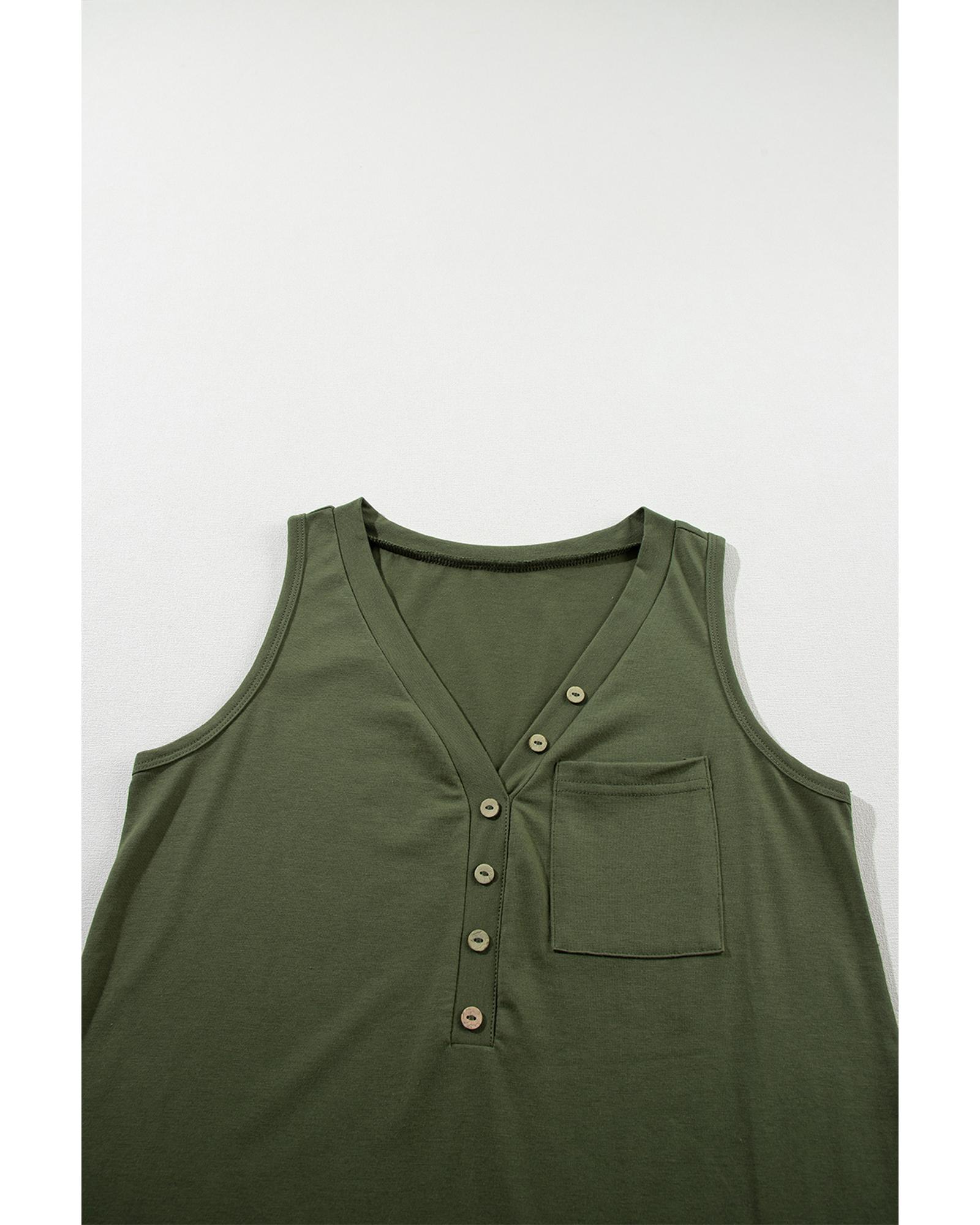 Jungle Green Half Button V Neck Patched Pocket Tank Top – M