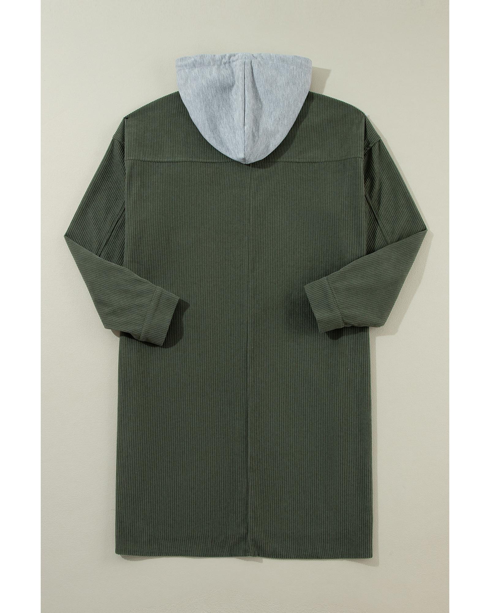 Jungle Green Oversized Corduroy Contrast Hooded Shacket - M