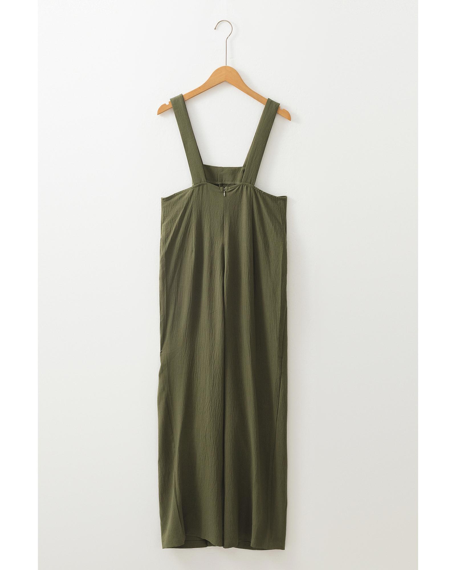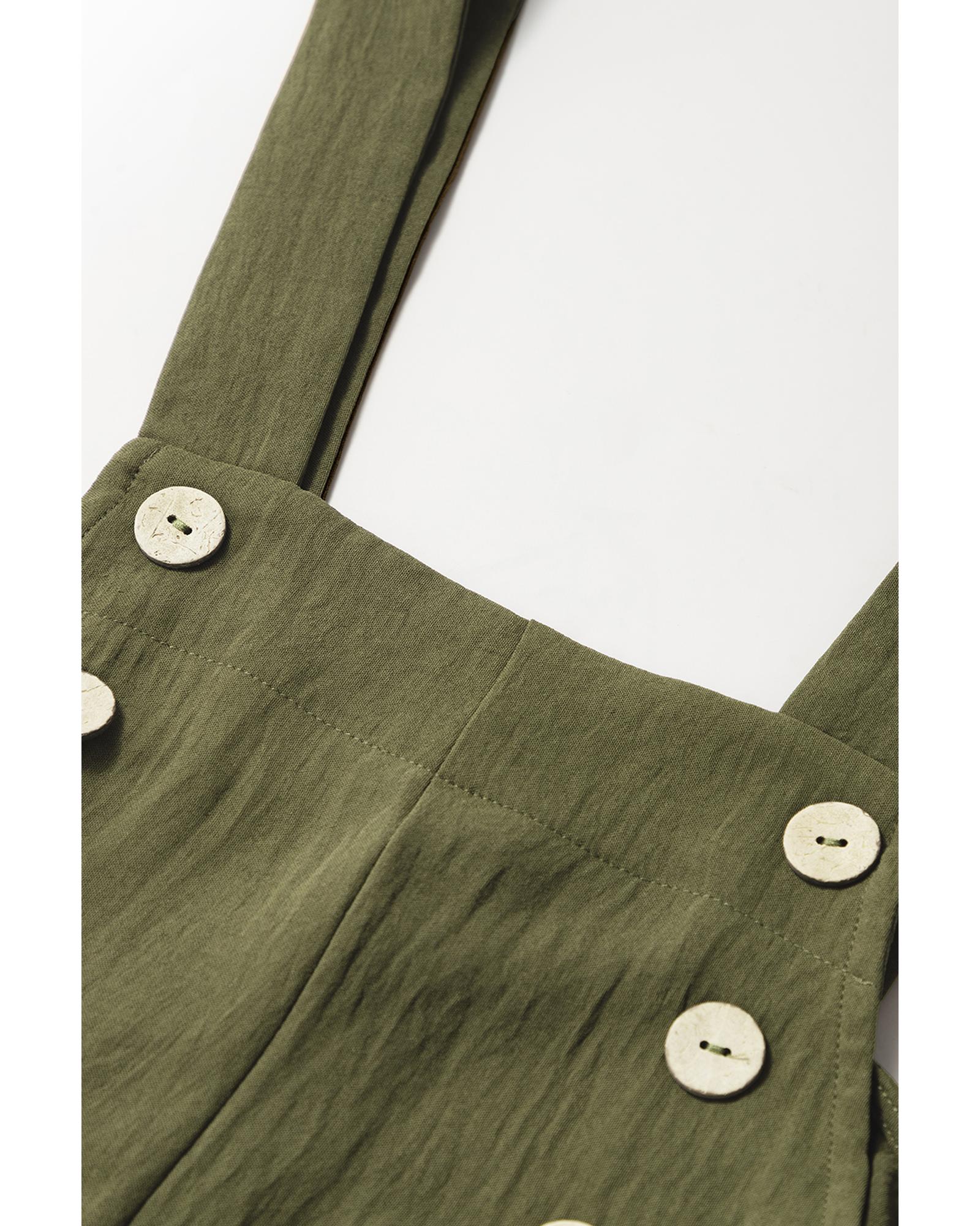 Jungle Green Solid Color Buttoned Straight Leg Overall – M