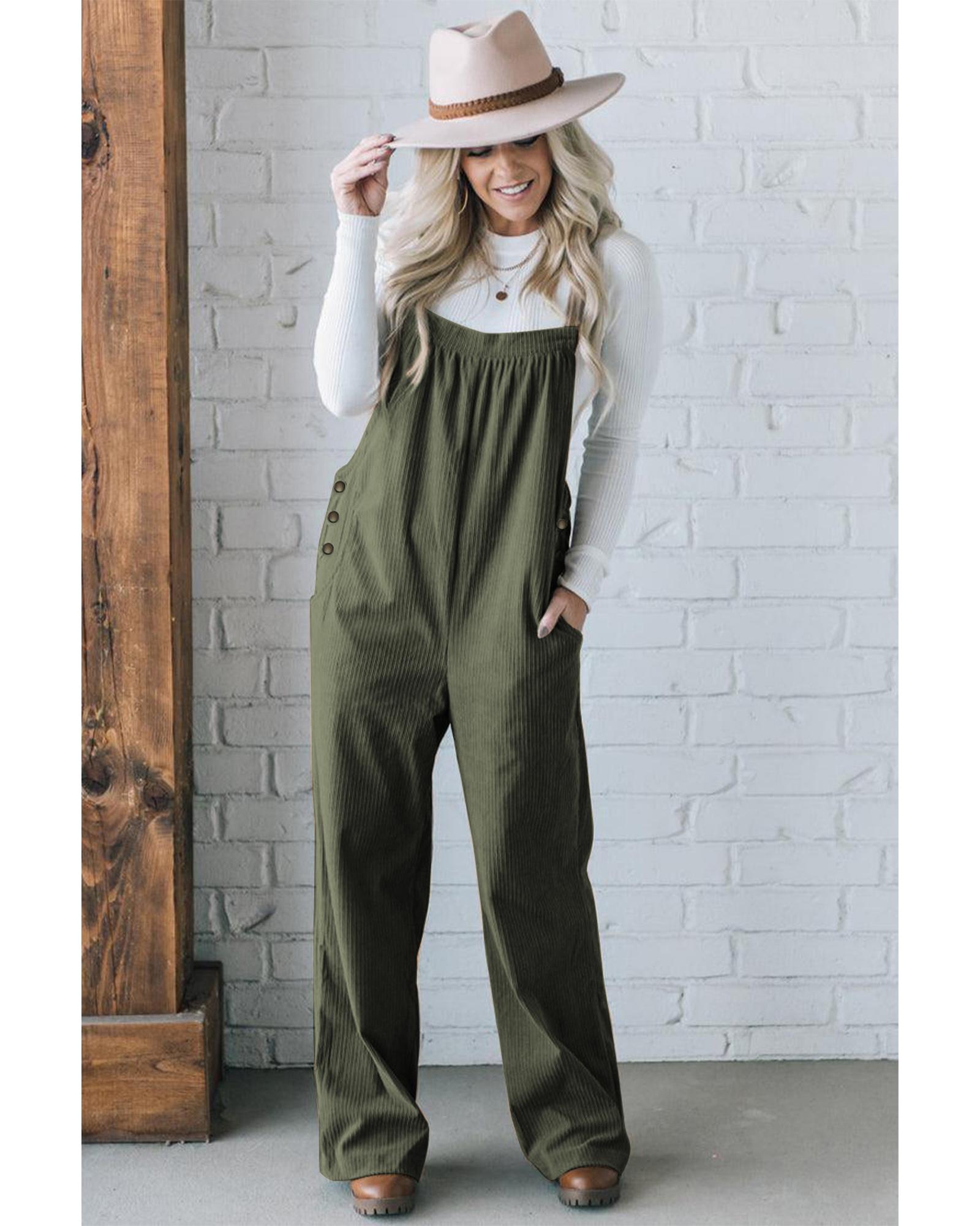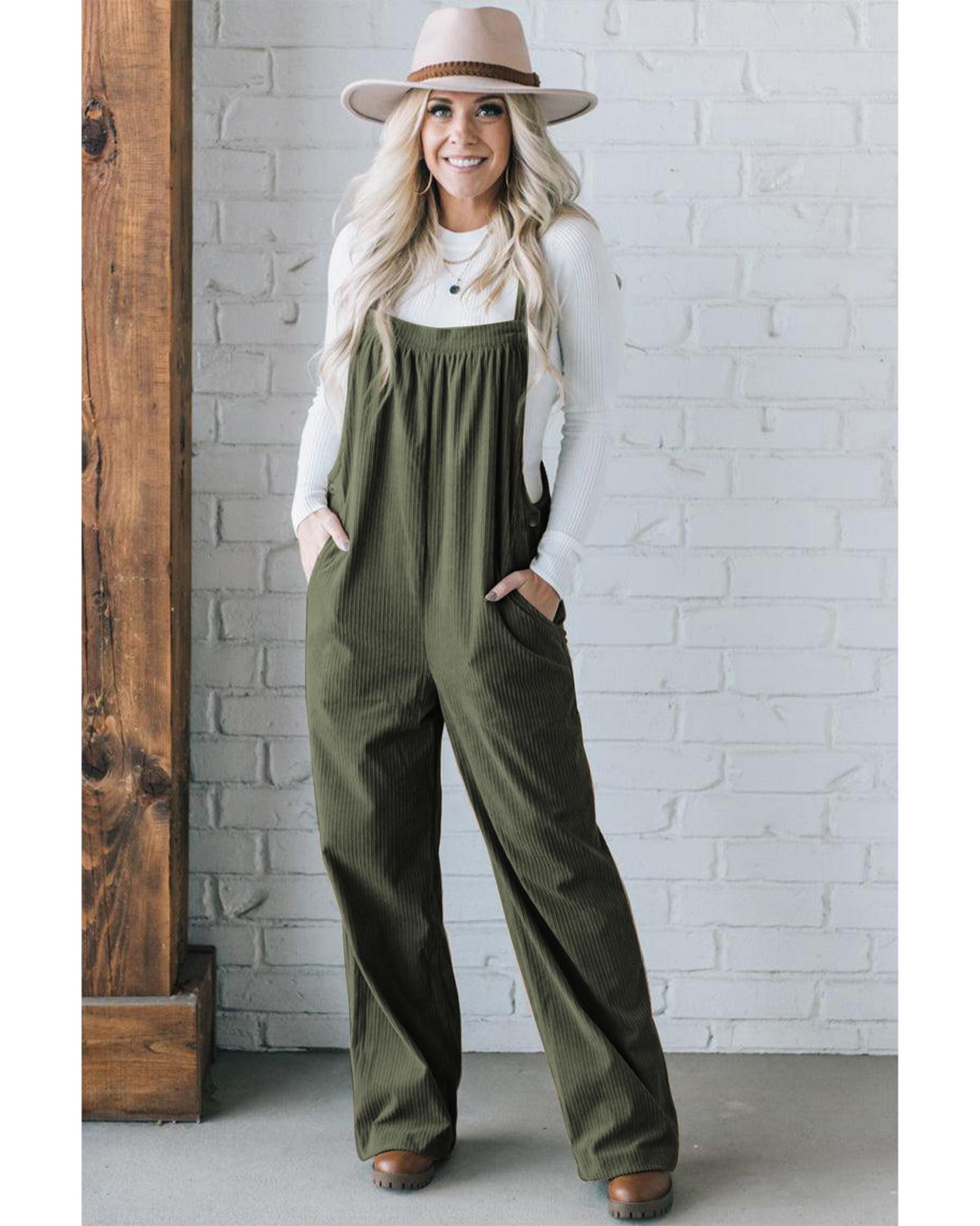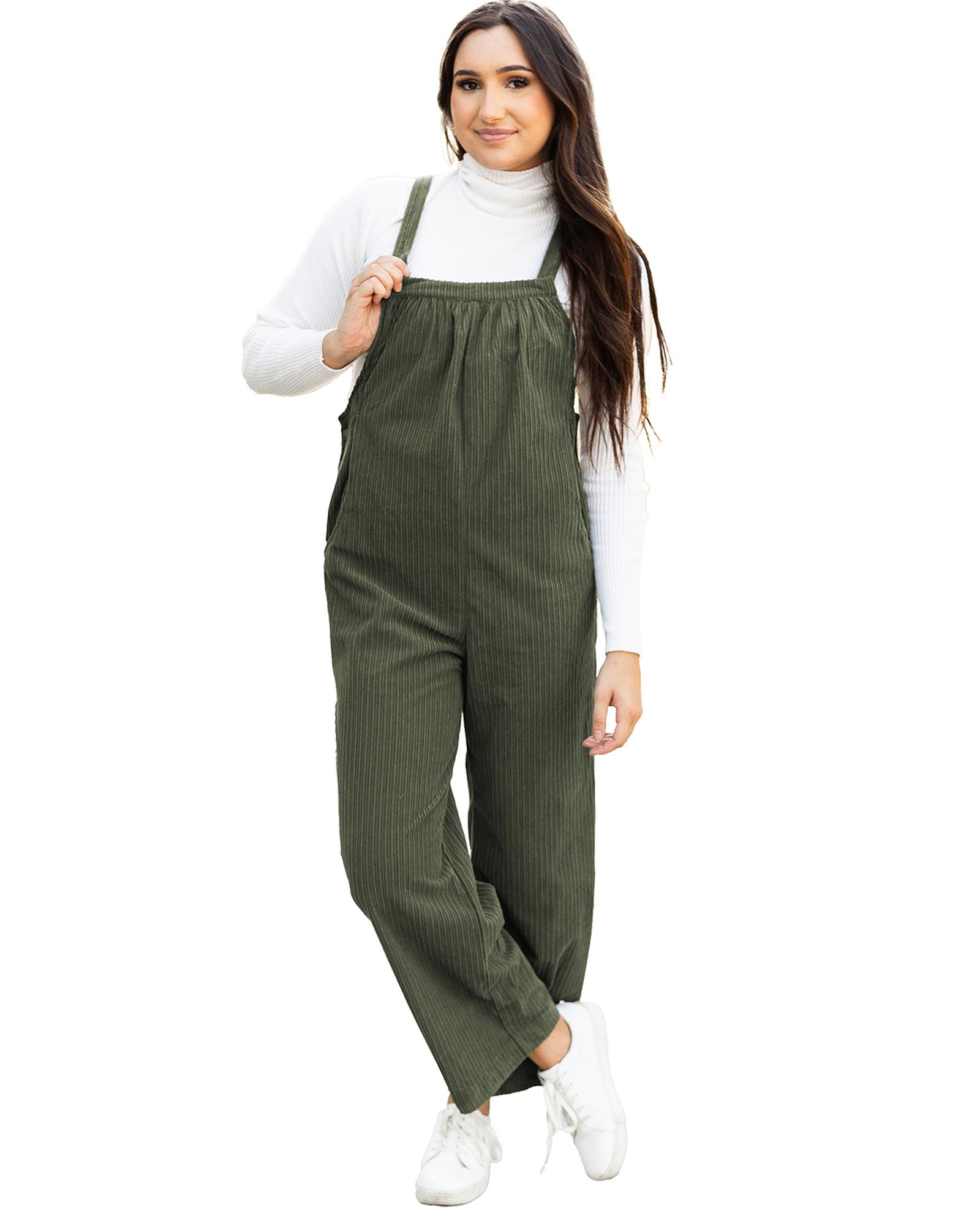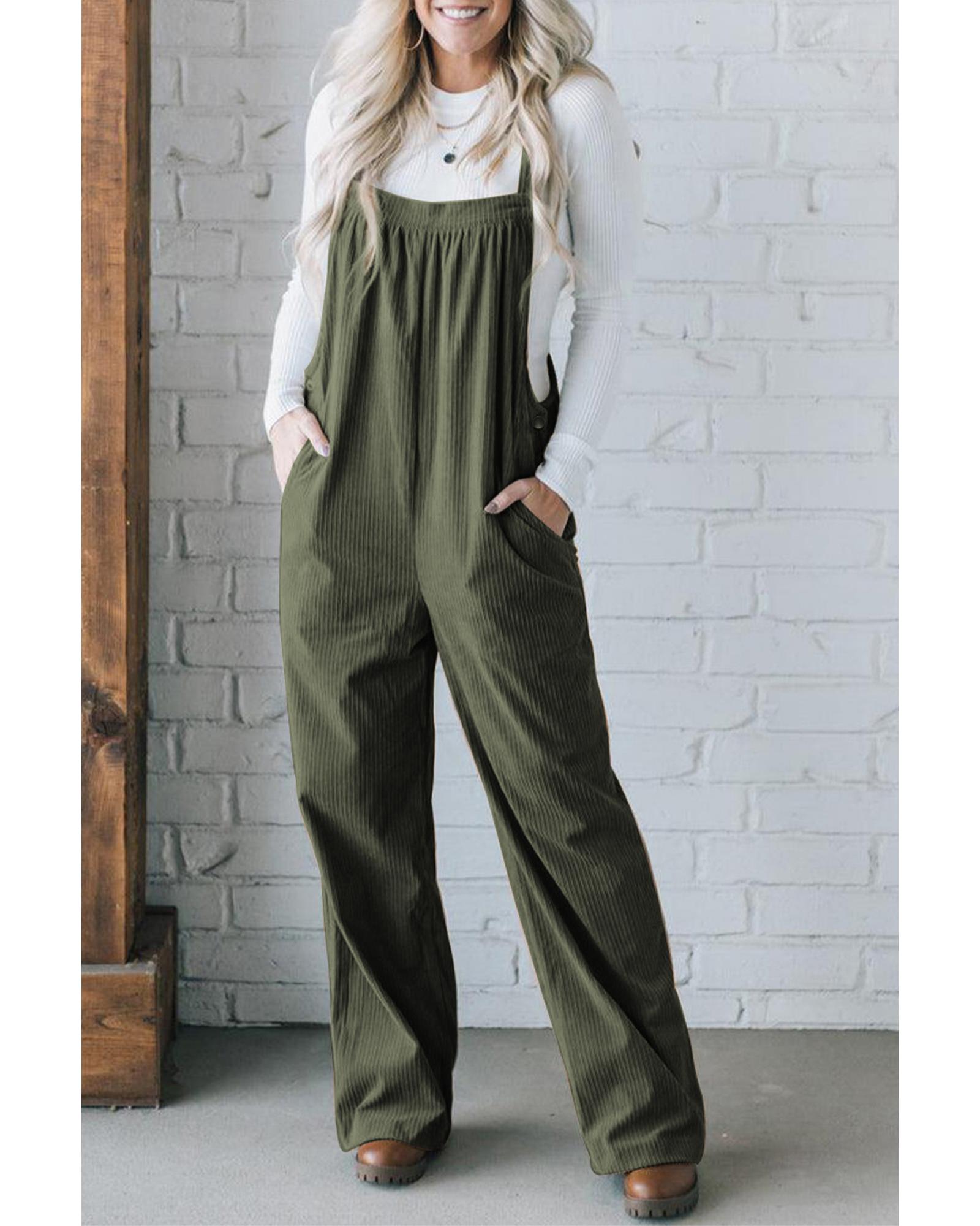 Jungle Green Solid Pocketed Loose Fit Corduroy Overall – L