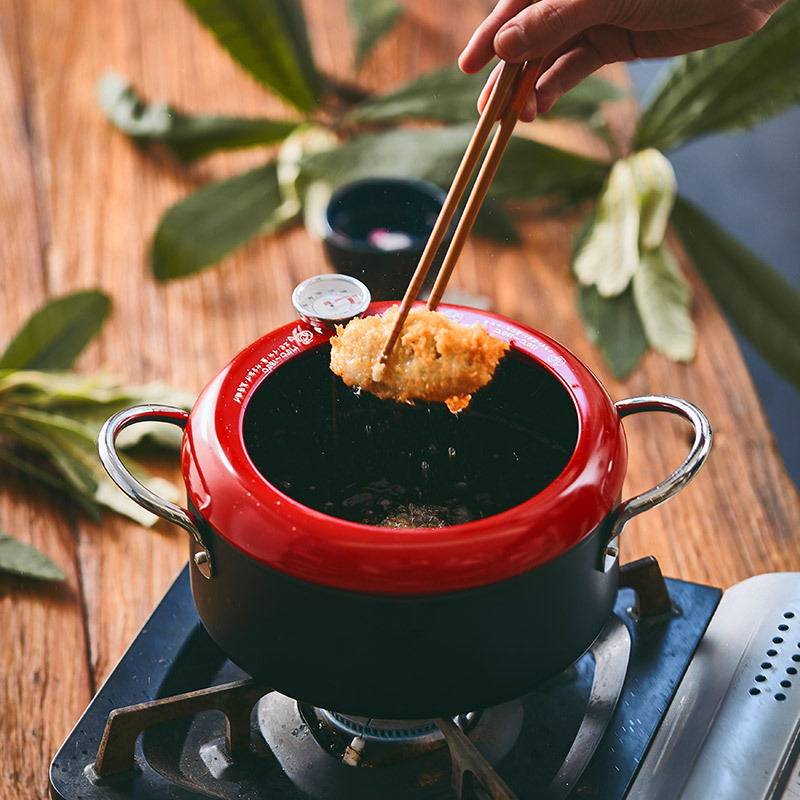 Justcook Kitchen Deep Fryeris made of iron with an uncoated surface, it is more healthy and safe. There is a detachable oil drainage rack inside the lid and a deep stainless steel fry thermometer, it is easy for draining and keep oil fall in the pot and convenient to watch and real-time control the oil temperature.