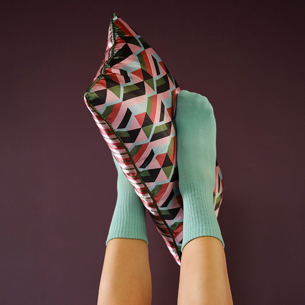 Decorative cushion KAAT Amsterdam Phoeby Multi Reversible Oblong Filled Cushion 30cm x 50cm has a cheerful look with a retro touch. The front features a print with lots of mini retro patterns in various colours of pink, green, sage, and black. The back features an all-over print of coloured stripes. Decorative cushion Phoeby is made of 100% polyester satin. The size is 30 x 50 cm. The cushion has a zipper at the bottom and comes with a resilient polyester inner cushion. Nice detail: the cushion has a golden puller at the zipper in the shape of an Amsterdam canal house. The cushion is is not suitable for machine washing or tumble drying.