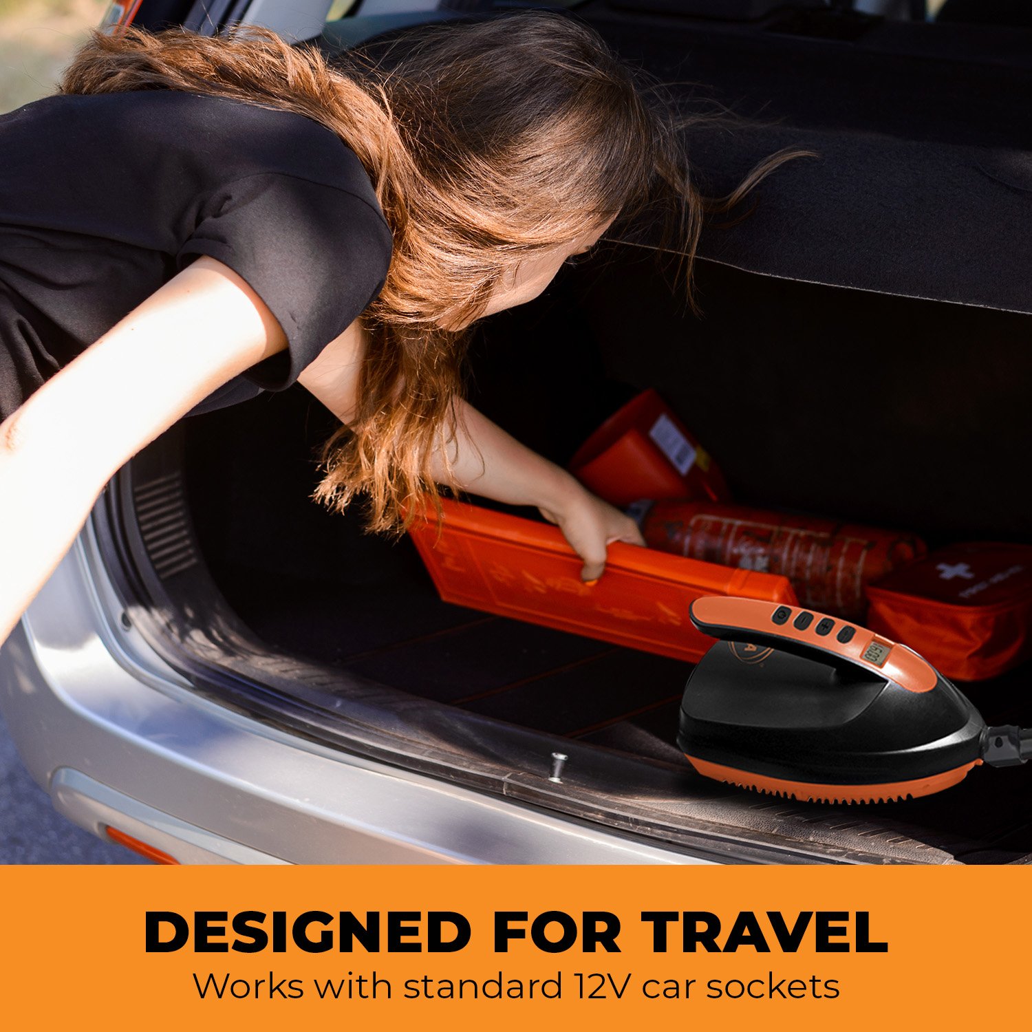 This lightweight portable air pump also has built-in cooling vents, a detachable hose, easy controls and non-slip rubber feet, making it perfect for travel.