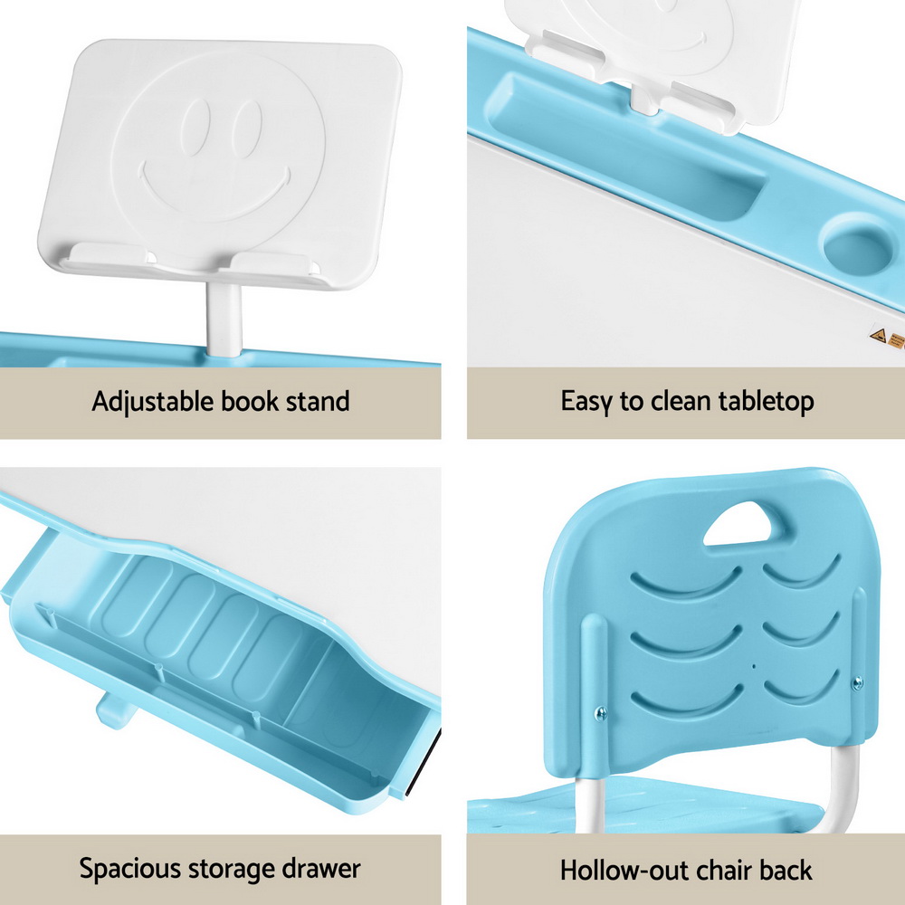 Keezi Kids Table and Chair Set Adjustable Study Desk w/ LED Lamp Reading Blue