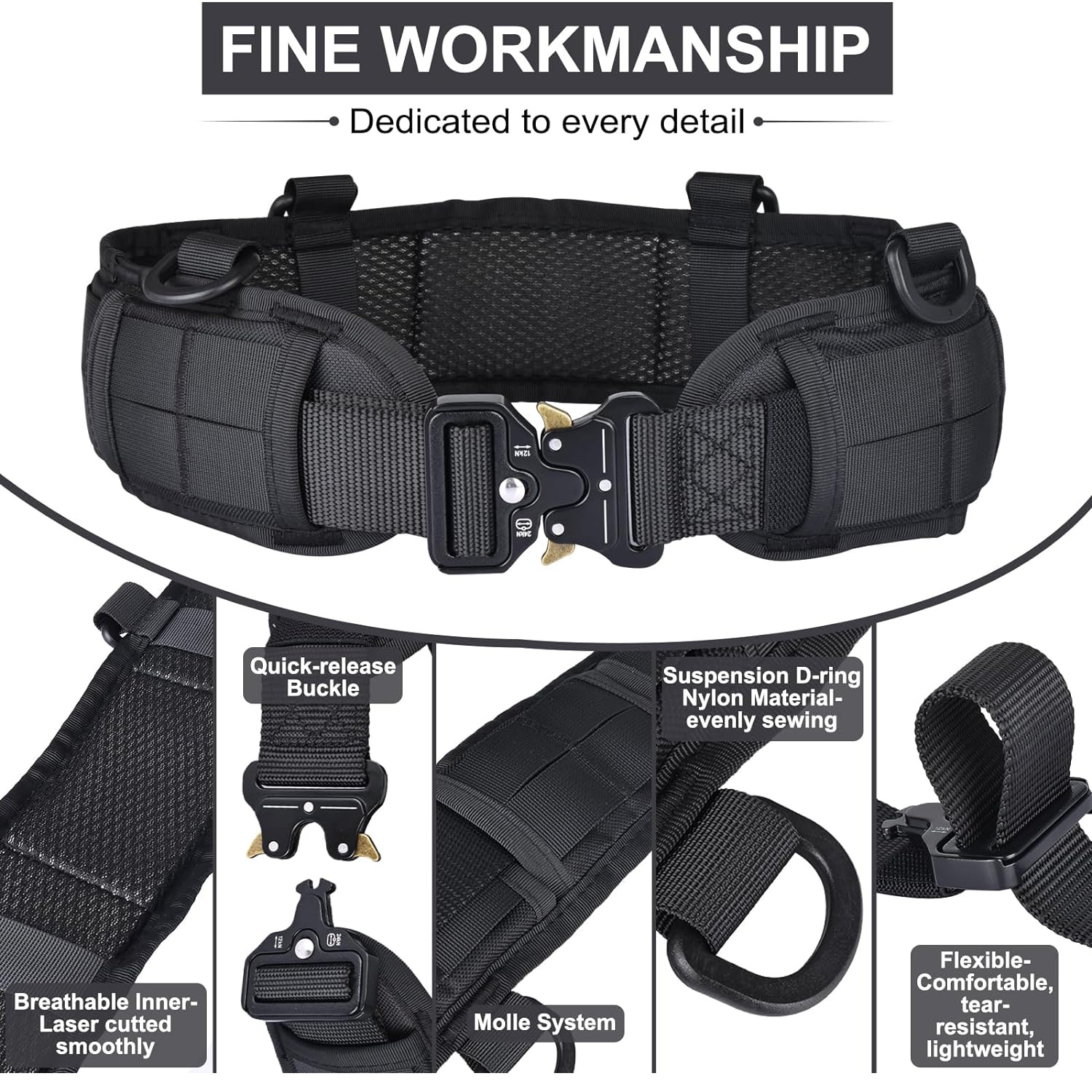 - MOLLE Webbing System: Equipped with extensive MOLLE (Modular Lightweight Load-carrying Equipment) webbing loops on the outer belt, allowing you to easily attach pouches, holsters, and other tactical accessories.