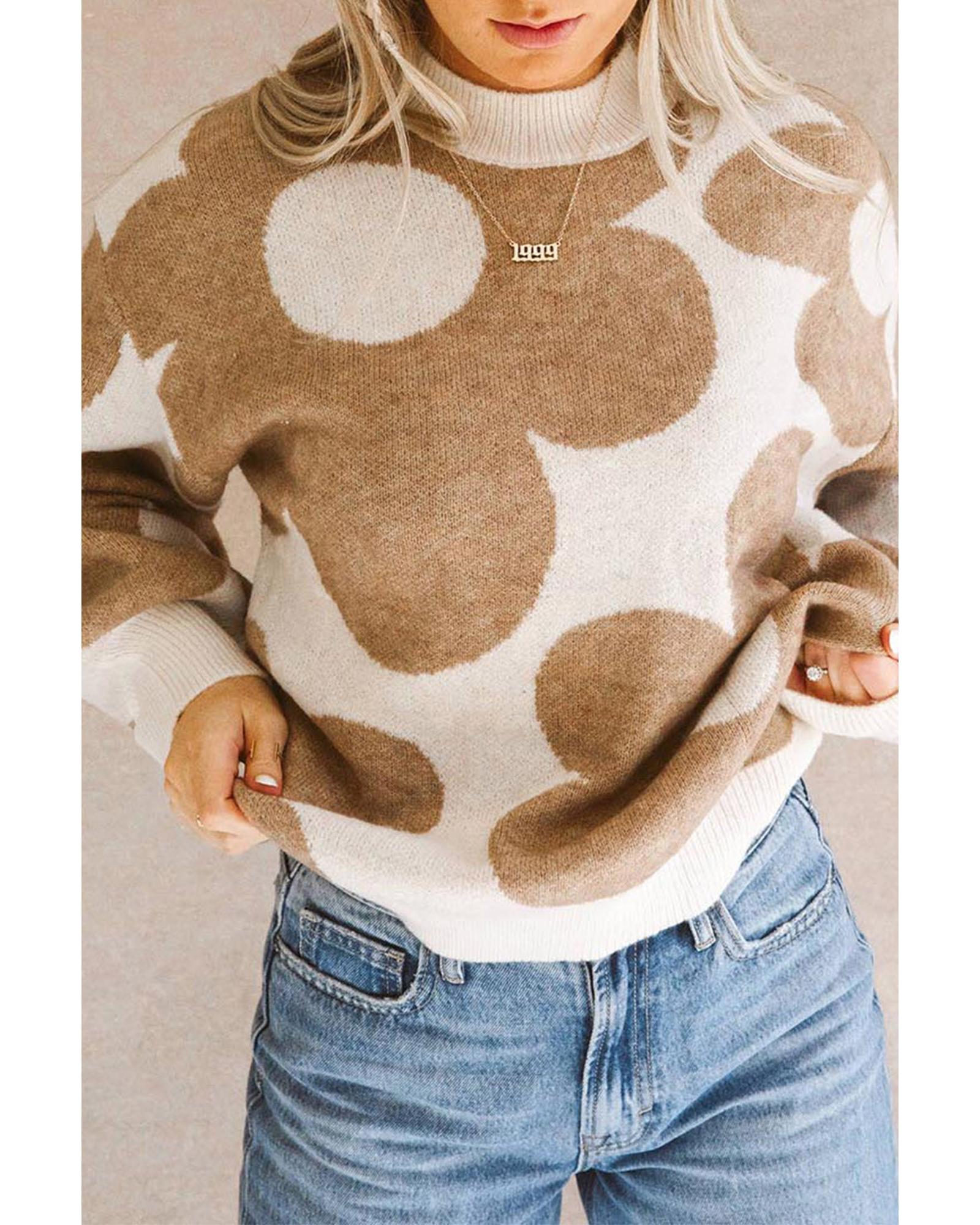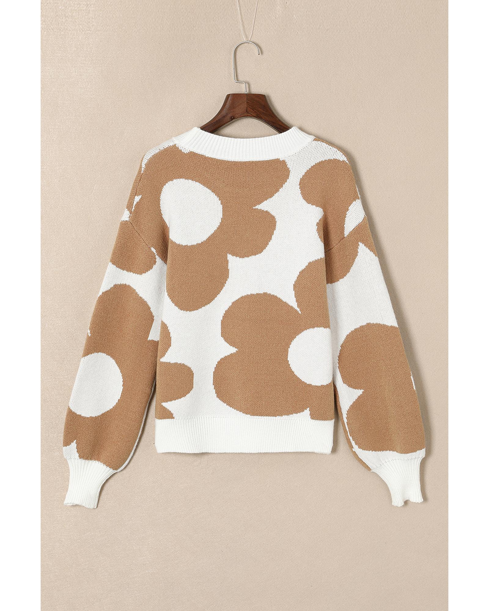 - Khaki Big Flower Pattern Drop Shoulder Sweater