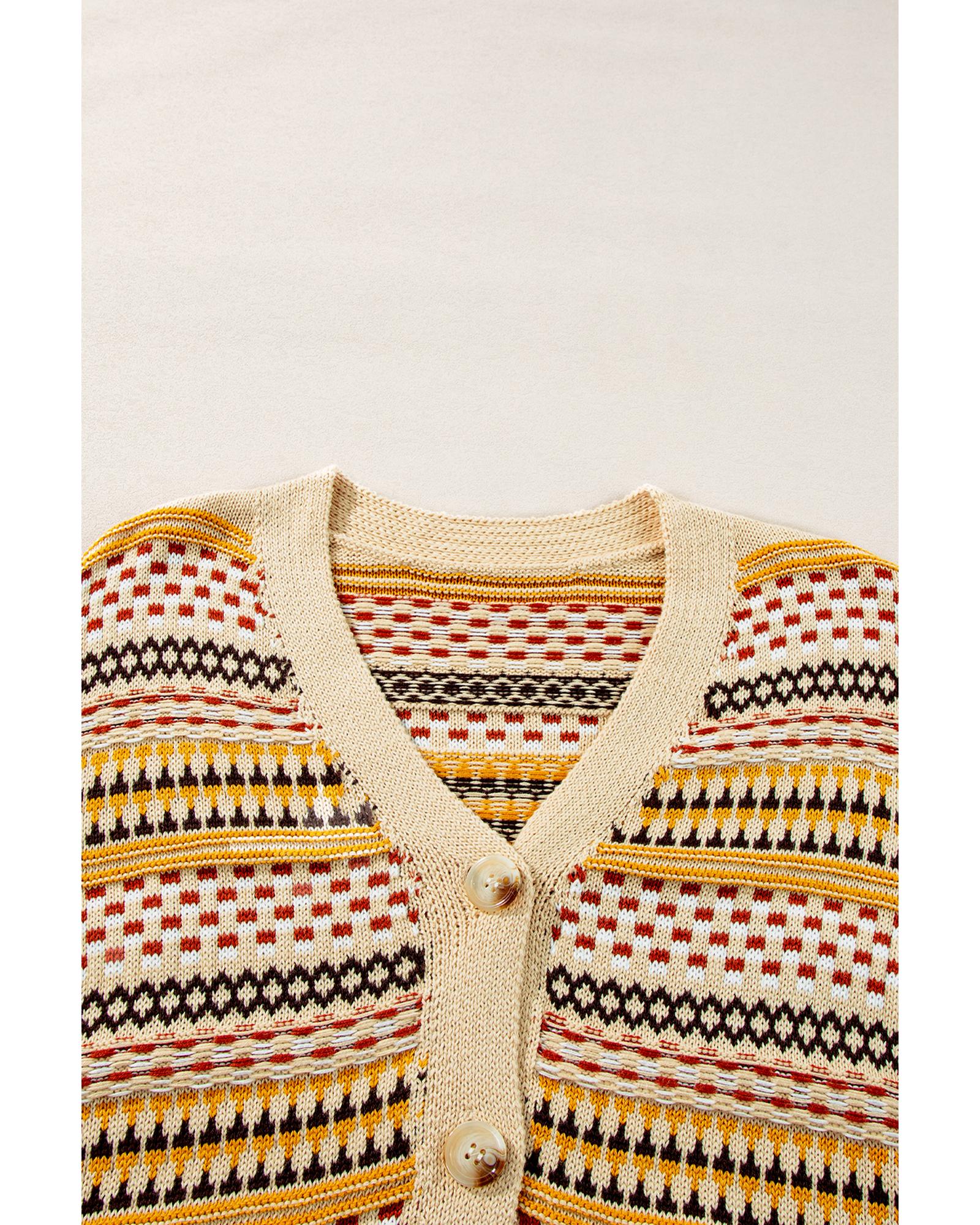 Khaki Buttoned V Neck Cropped Cardigan – 2XL