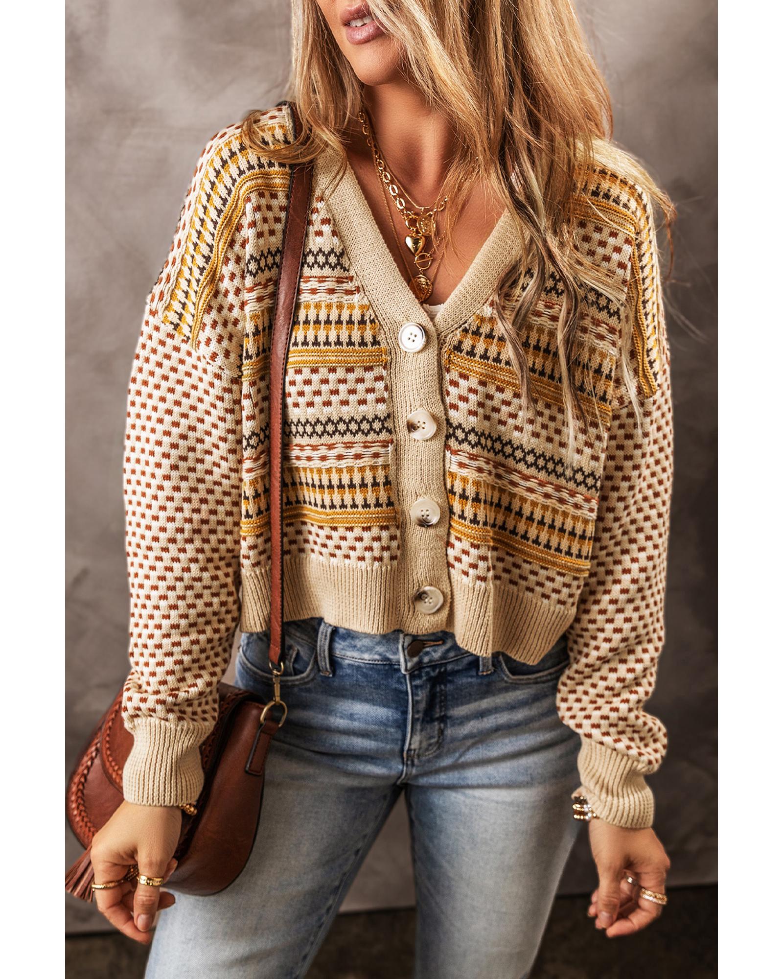 Khaki Buttoned V Neck Cropped Cardigan – L