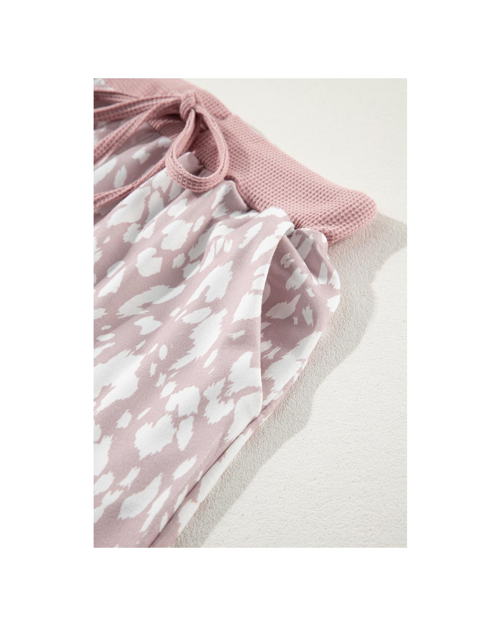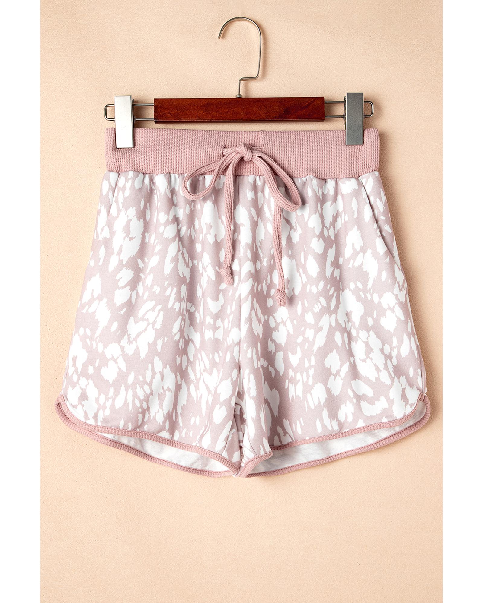 Khaki Classic Leopard Arched Hem Elastic Waist Casual Shorts – XL
