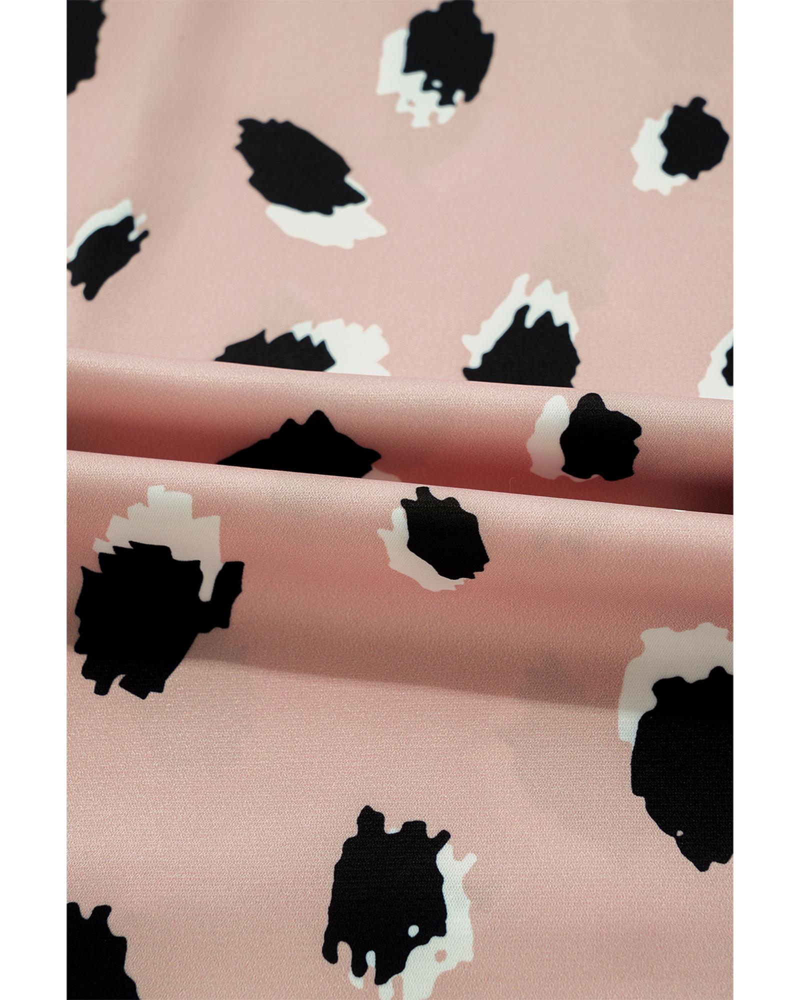 Khaki Classic Leopard V Neck Bracelet Sleeve Blouse – M