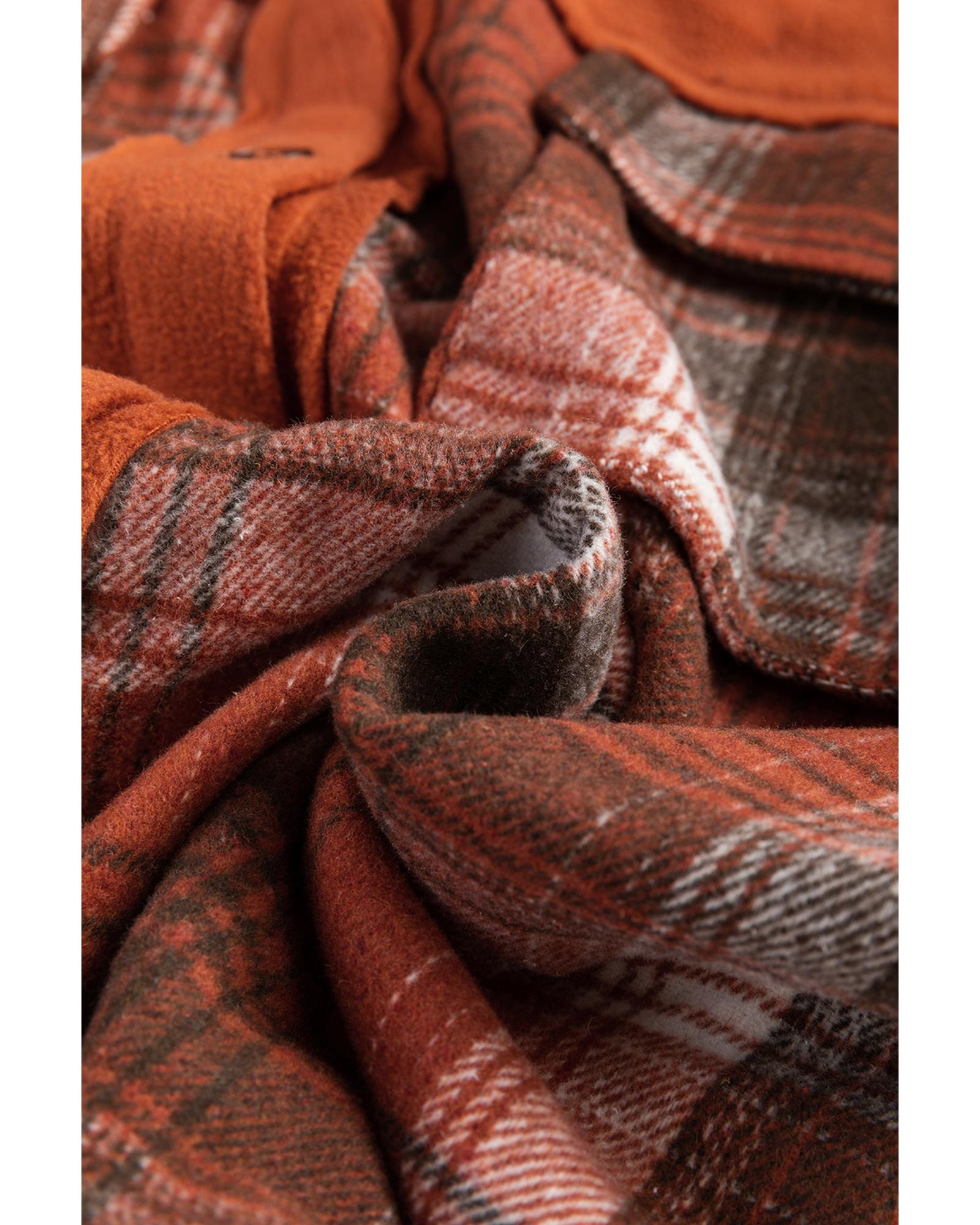 Khaki Colorblock Plaid Pattern Flap Pockets Buttoned Shacket – M