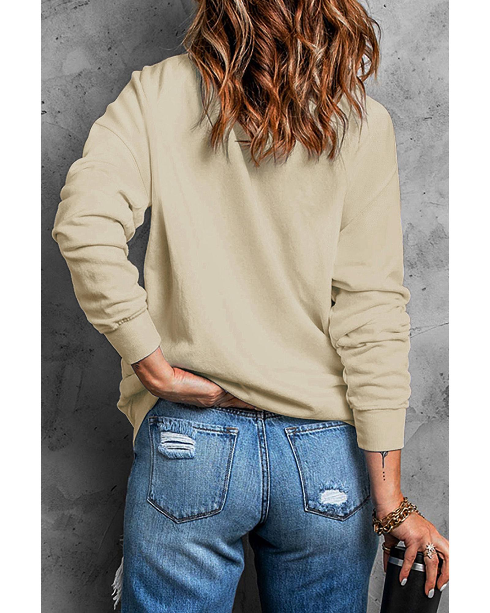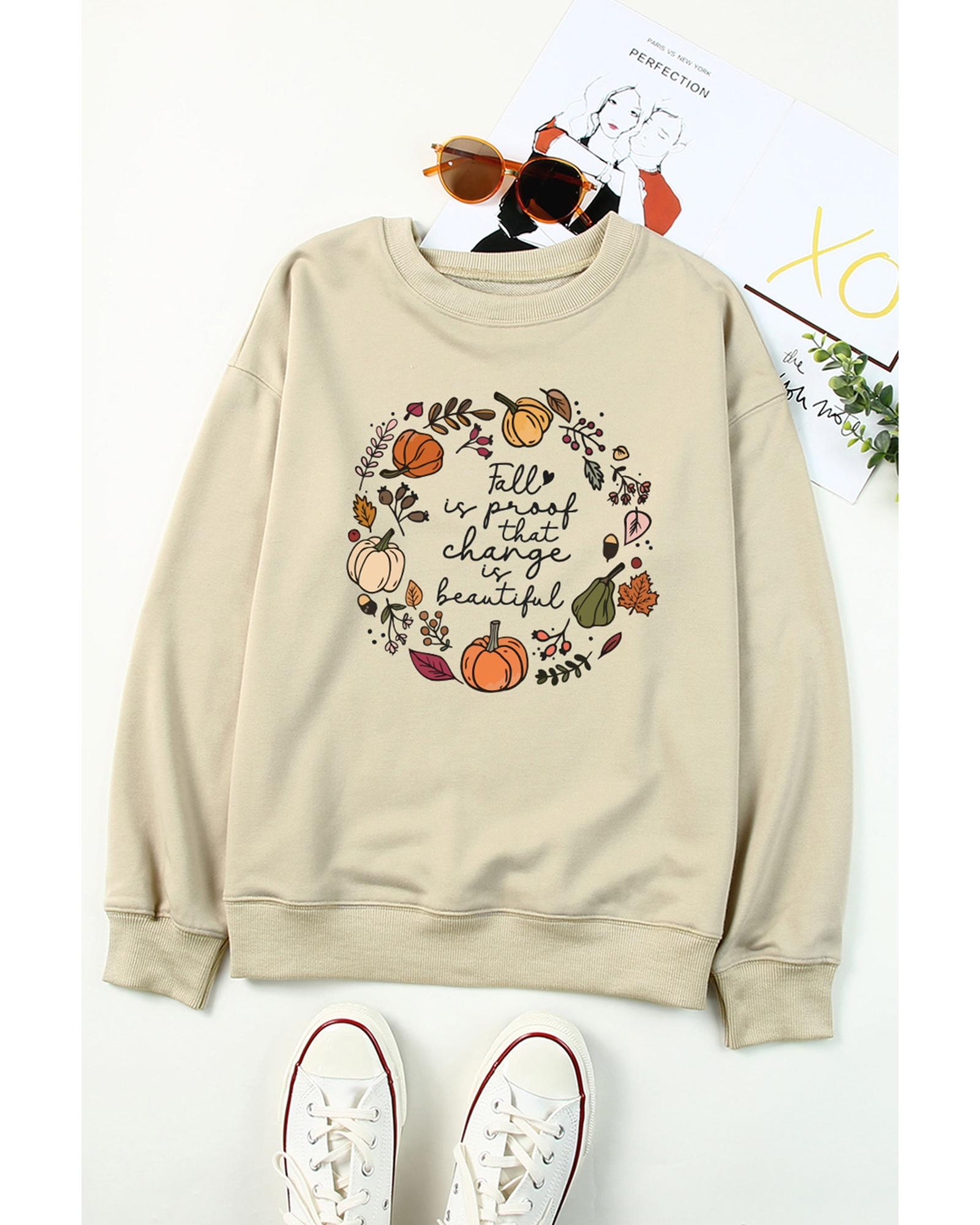 - Khaki Fall Vibe Pumpkin Print Round Neck Sweatshirt
