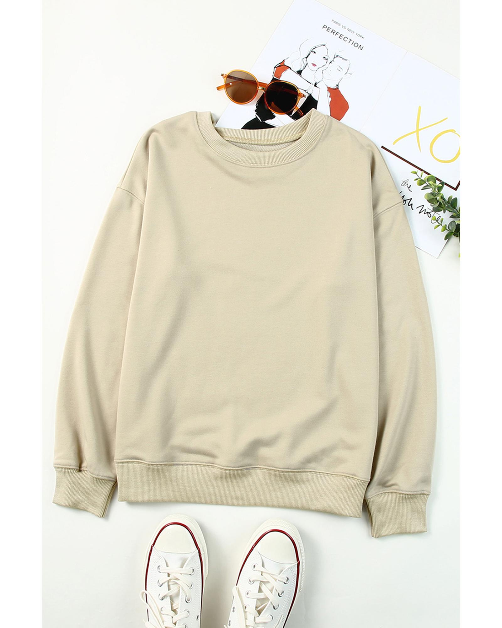 Khaki Fall Vibe Pumpkin Print Round Neck Sweatshirt – XL