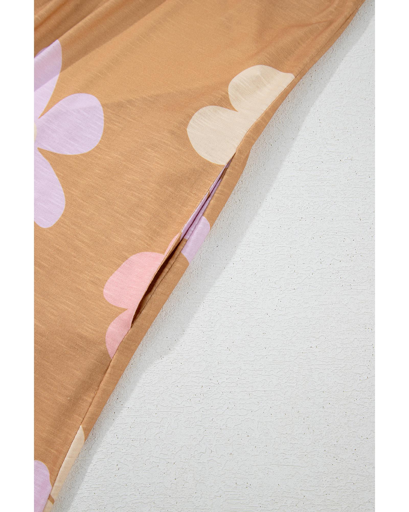 Khaki Floral Print Sleeveless Button up Wide Leg Loose Jumpsuit – S