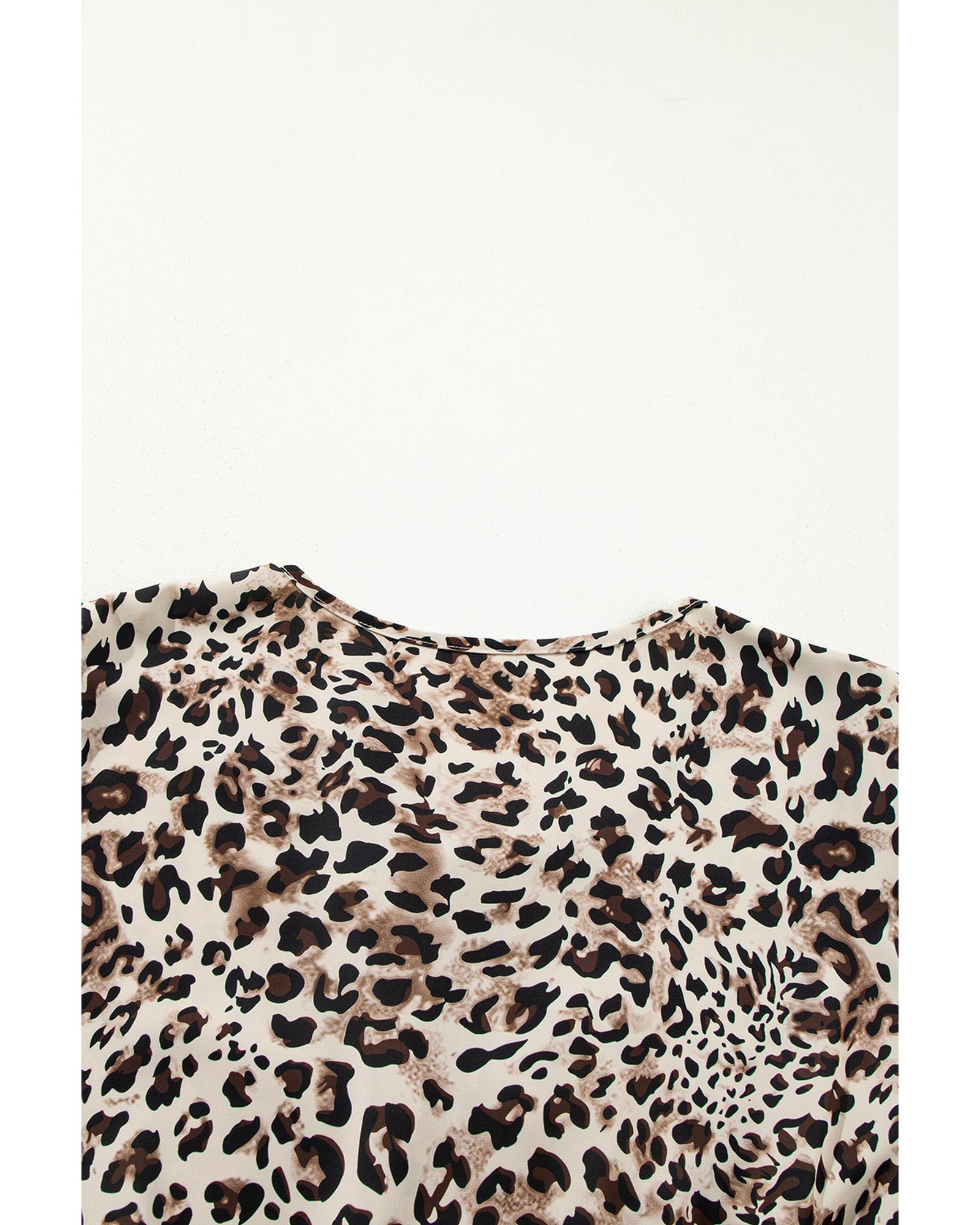 Khaki Leopard Print Lace-up Ruffled 3/4 Sleeve Plus Size Blouse – 1X