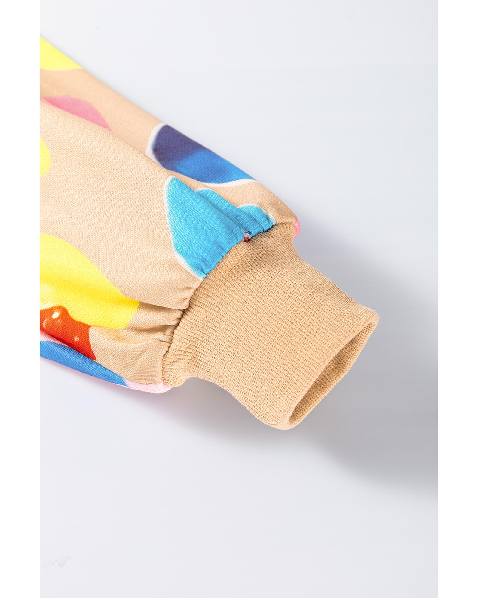 Khaki Multicolor Leopard Printed Drop Shoulder Pullover Sweatshirt – S