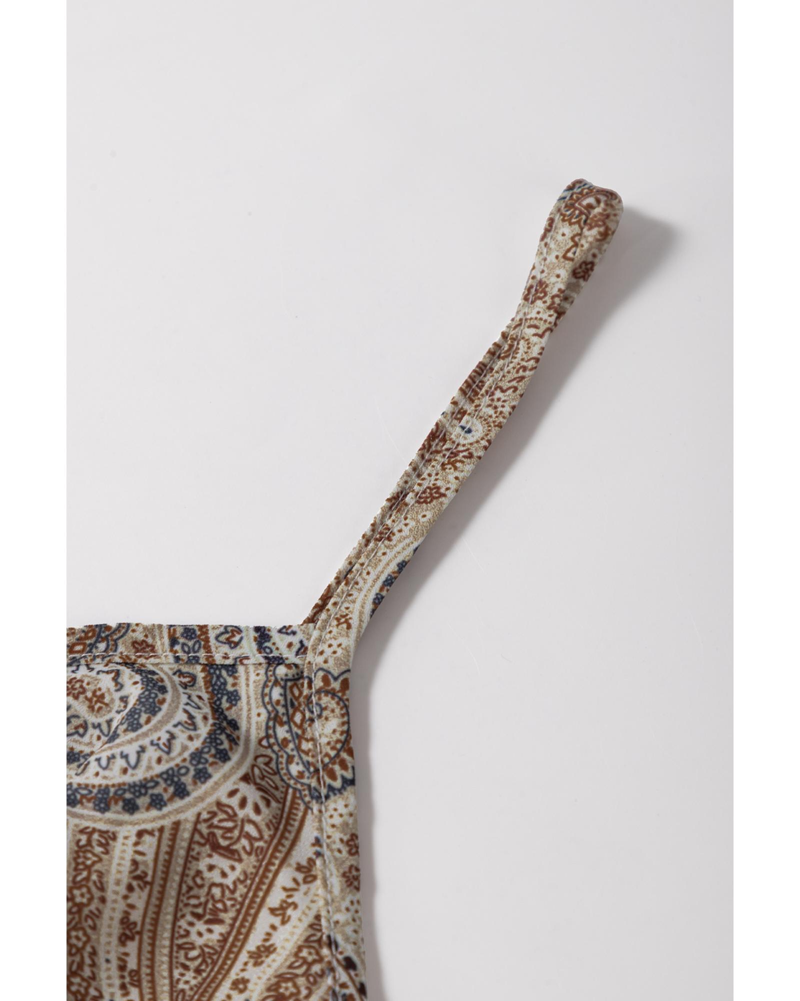 Khaki Paisley Printed Spaghetti Strap V Neck Smocked Babydoll Tank Top – XL
