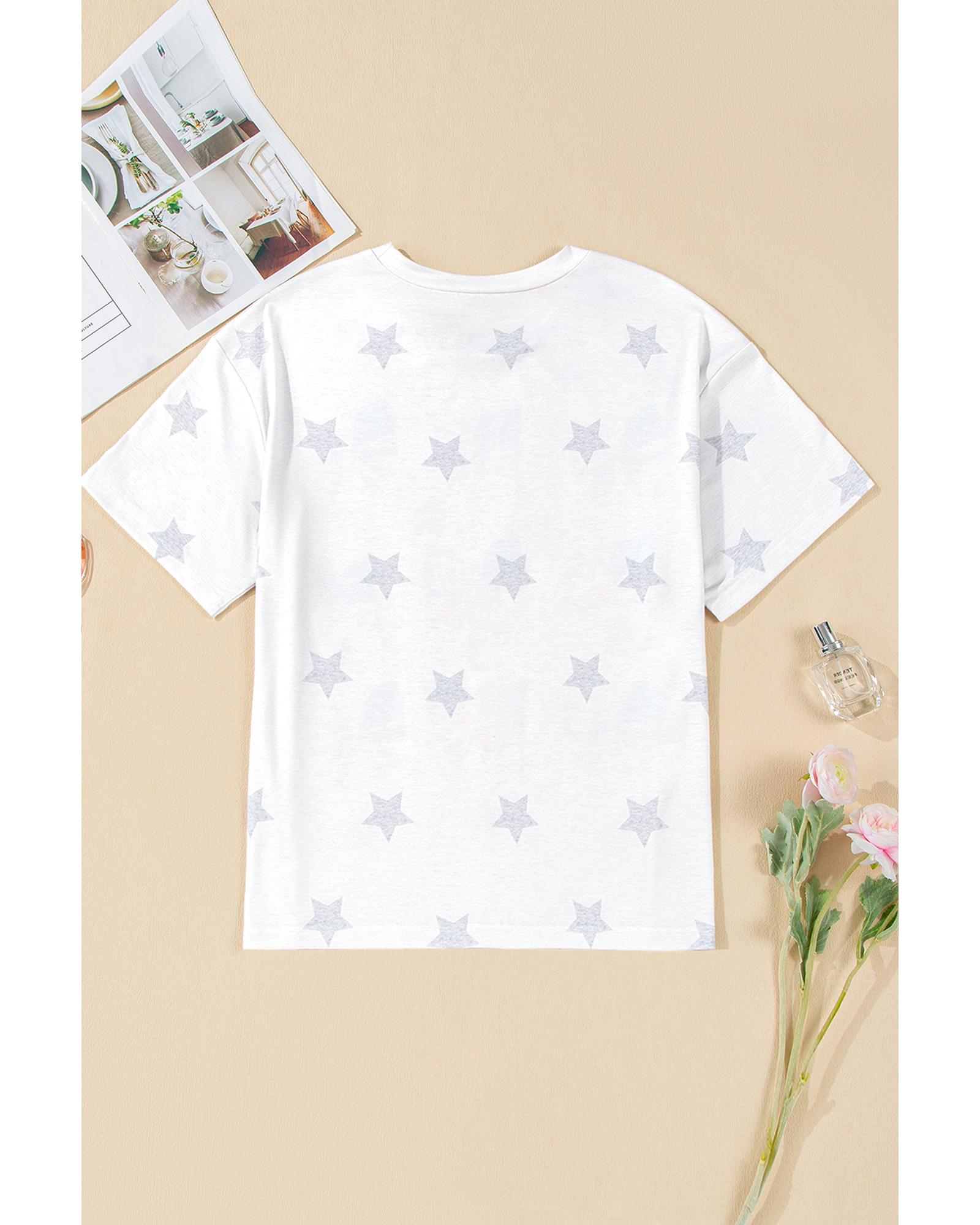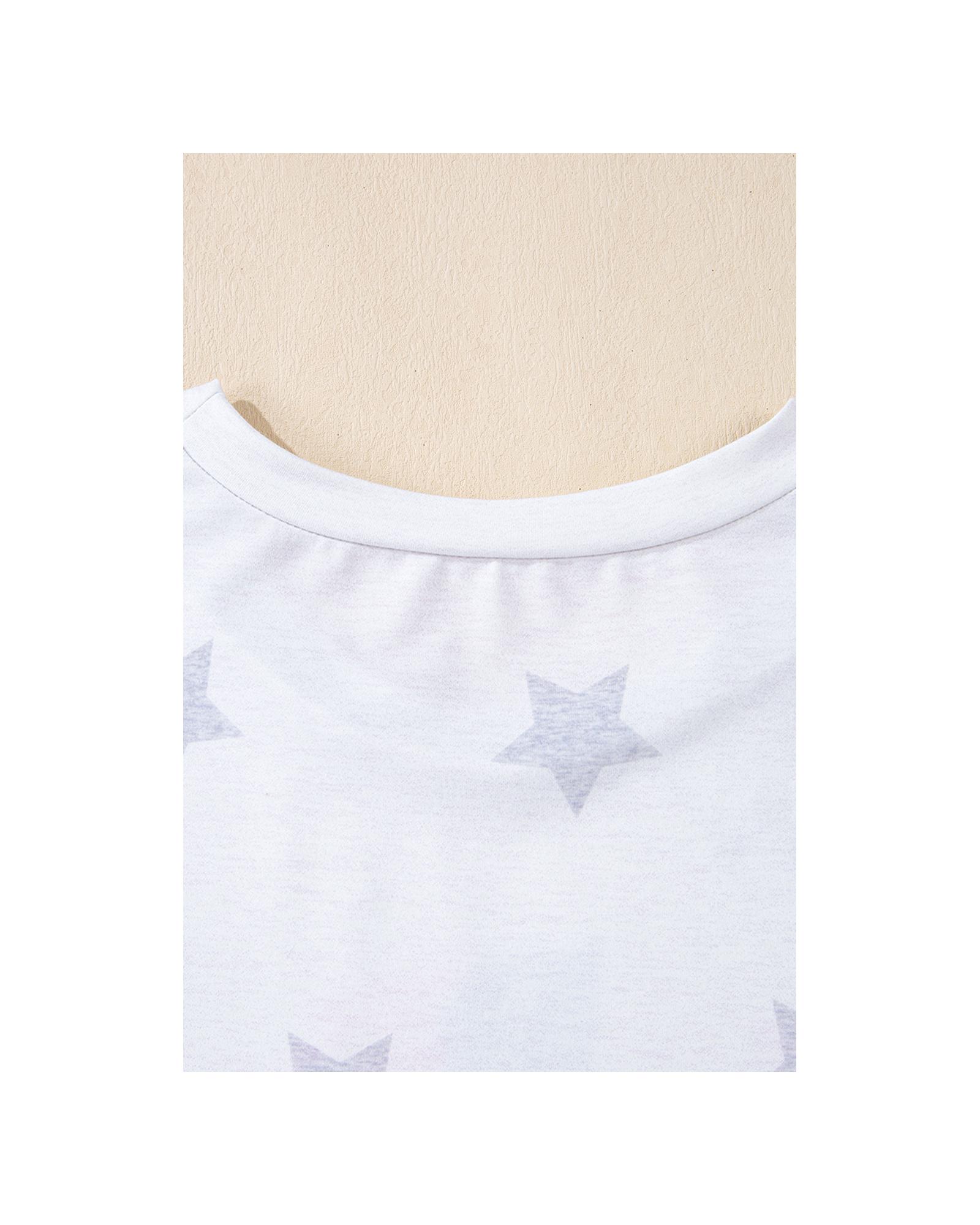 • Khaki Patriotic Flag Bow Graphic Starry Round Neck T
