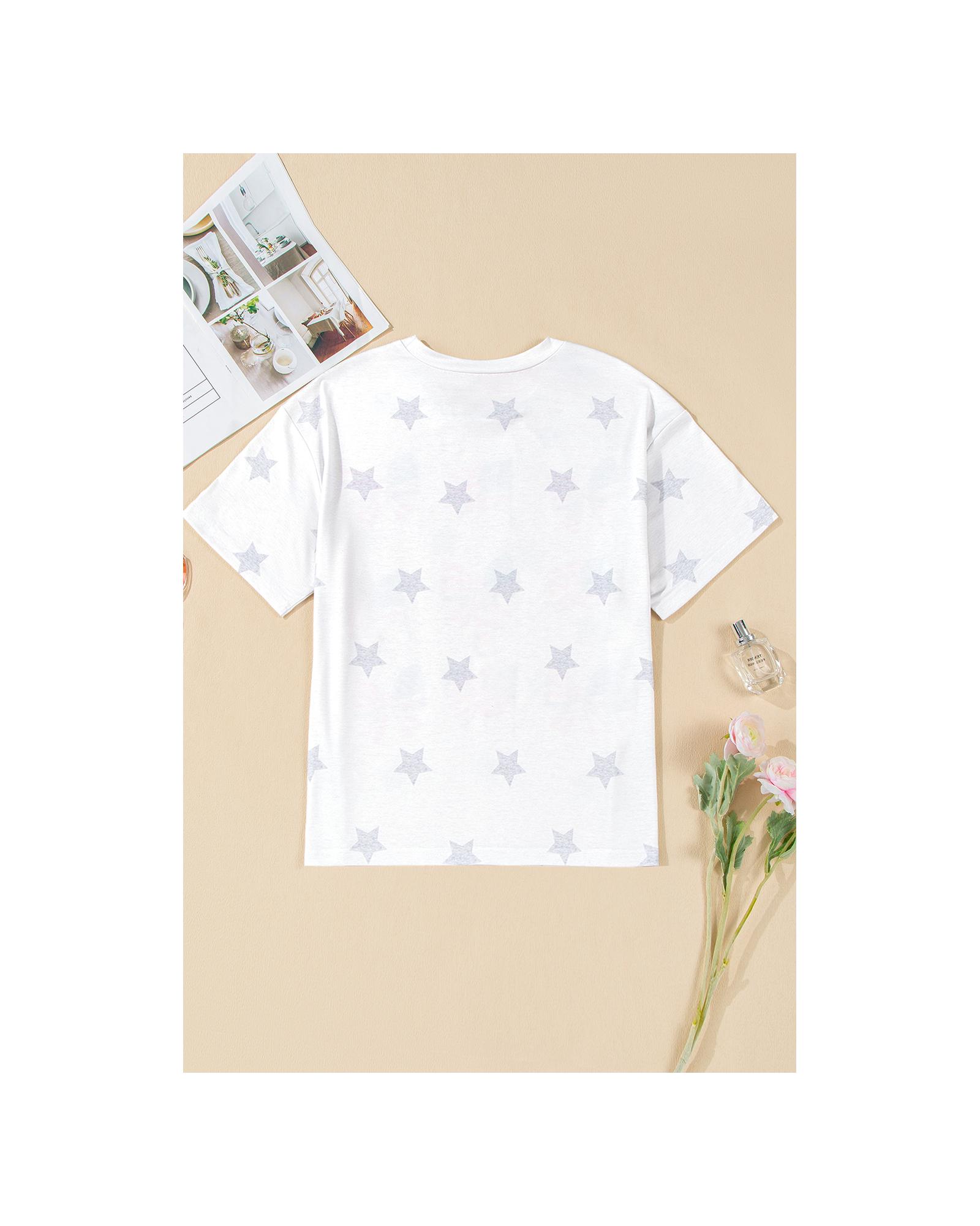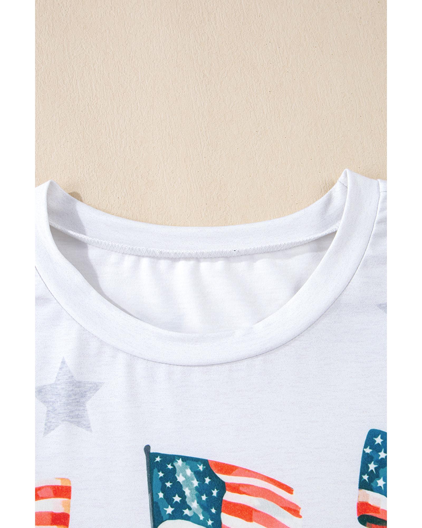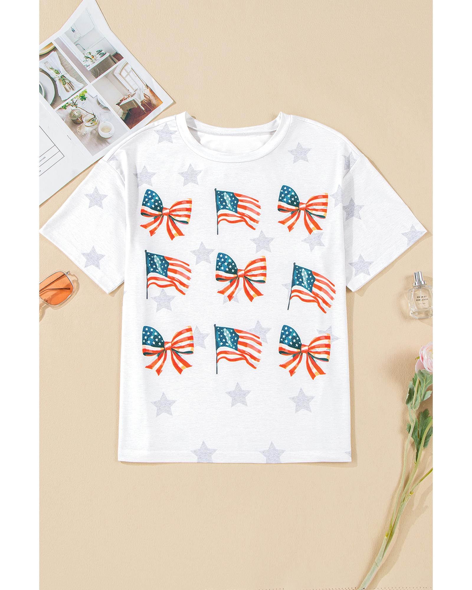 • Khaki Patriotic Flag Bow Graphic Starry Round Neck T