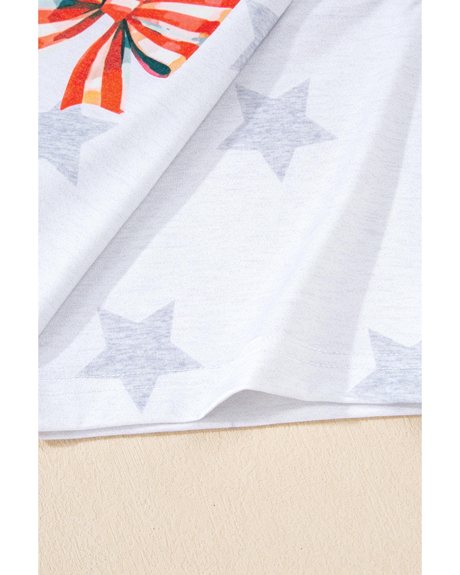 - Khaki Patriotic Flag Bow Graphic Starry Round Neck T