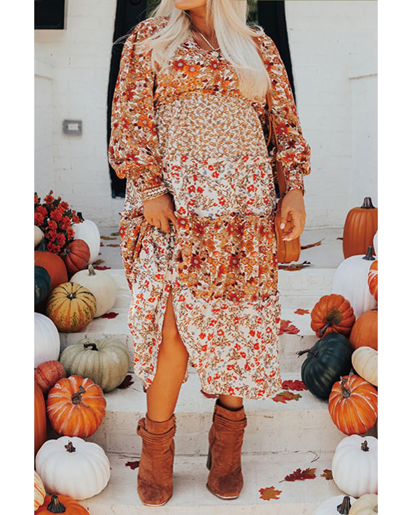 - Khaki Plus Size Floral Tiered Ruffle Maxi Dress
