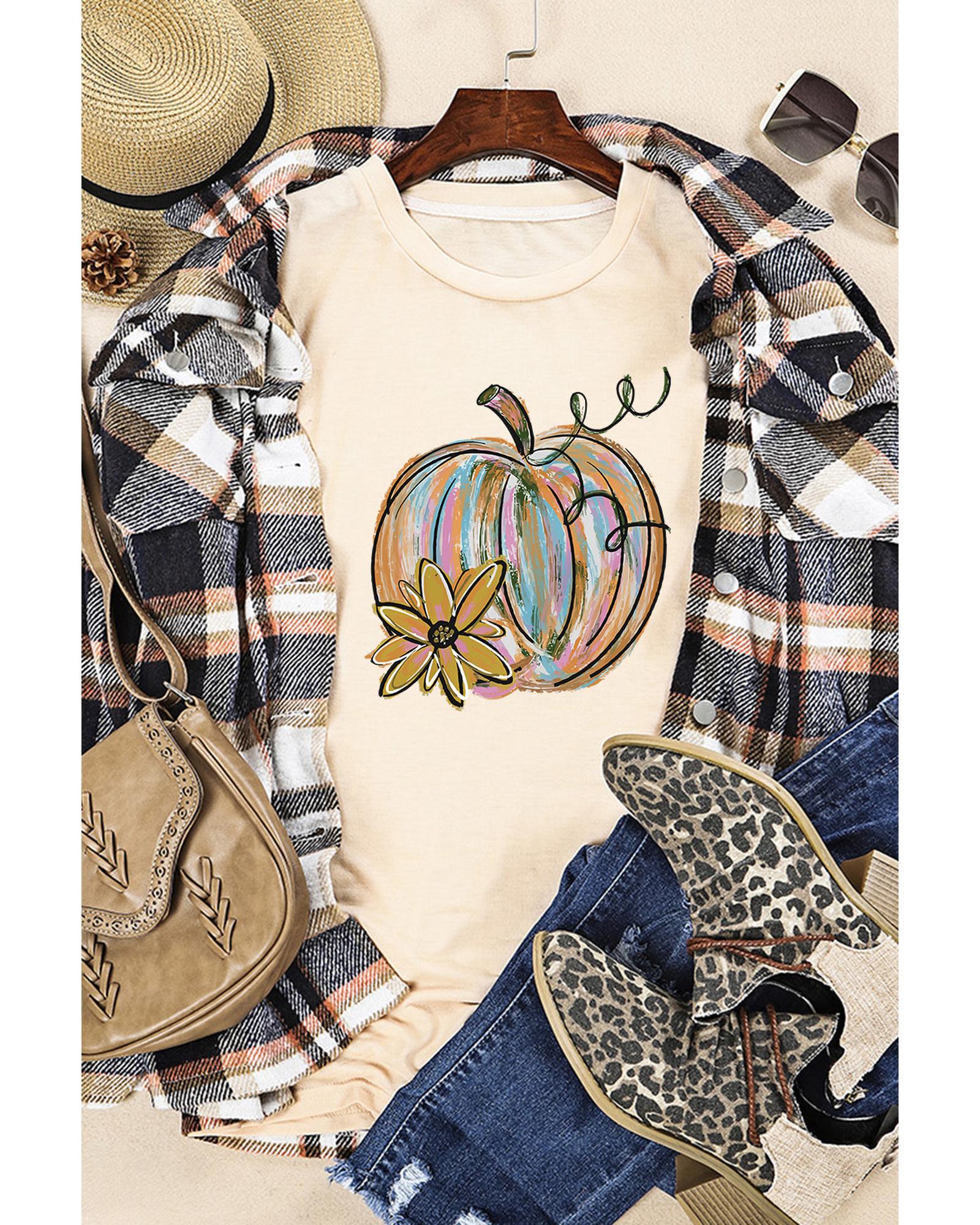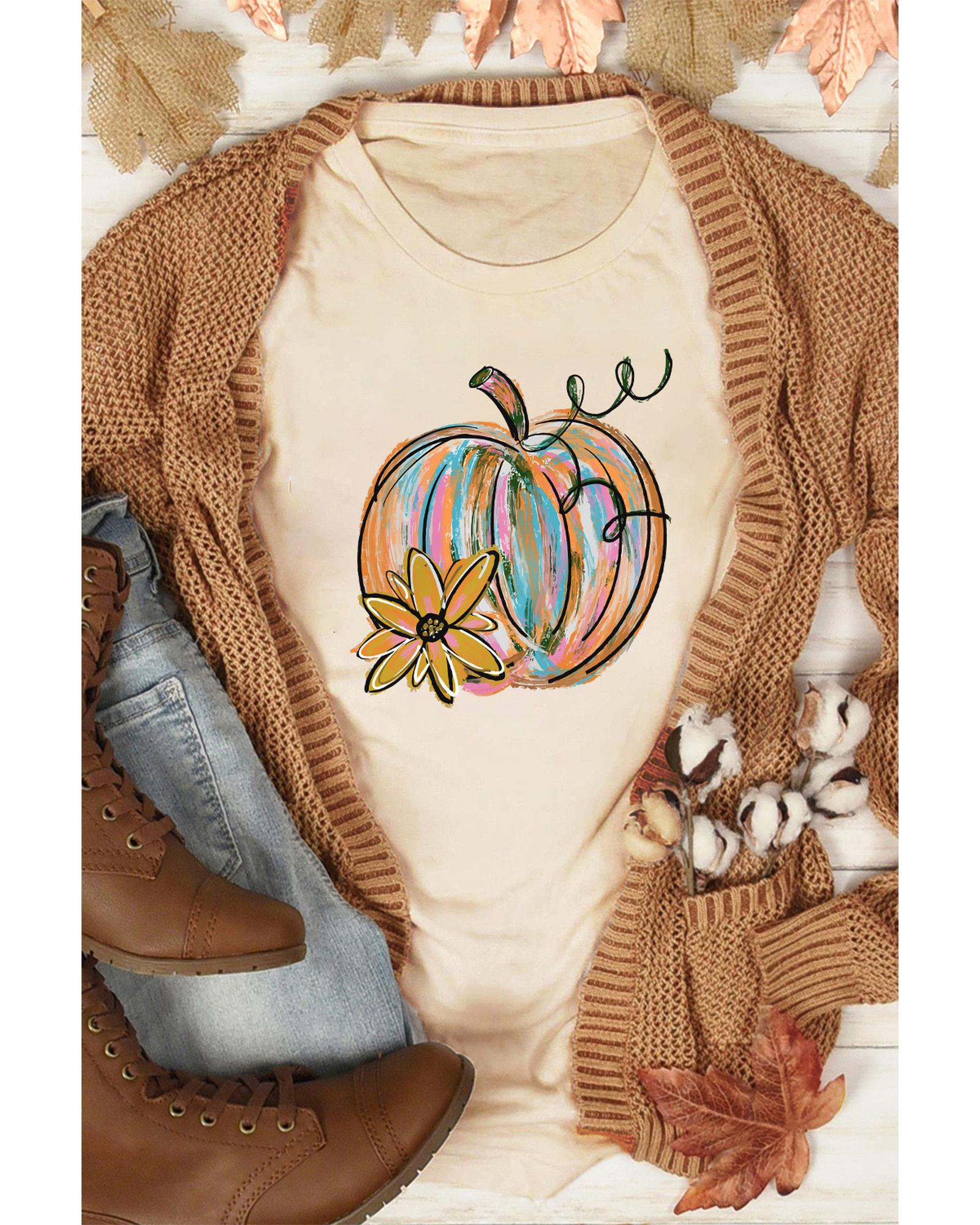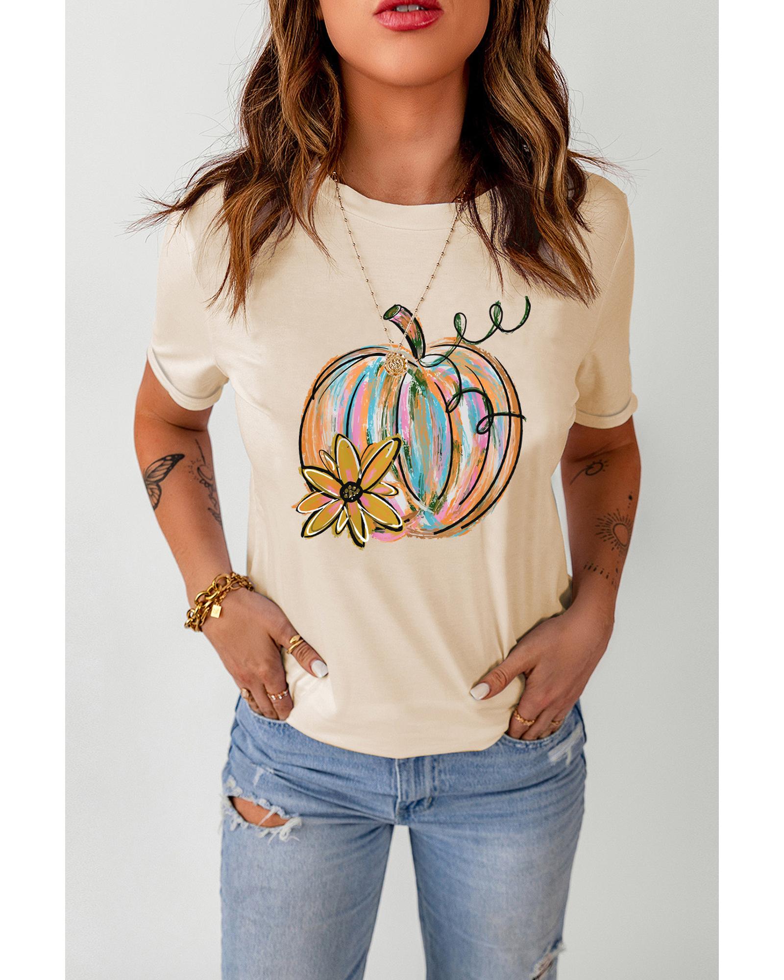 • Shirt Unique pumpkin flower graphic print on the front Short sleeves for comfort and breathability Available in multiple sizes for a perfect fit Made from high
