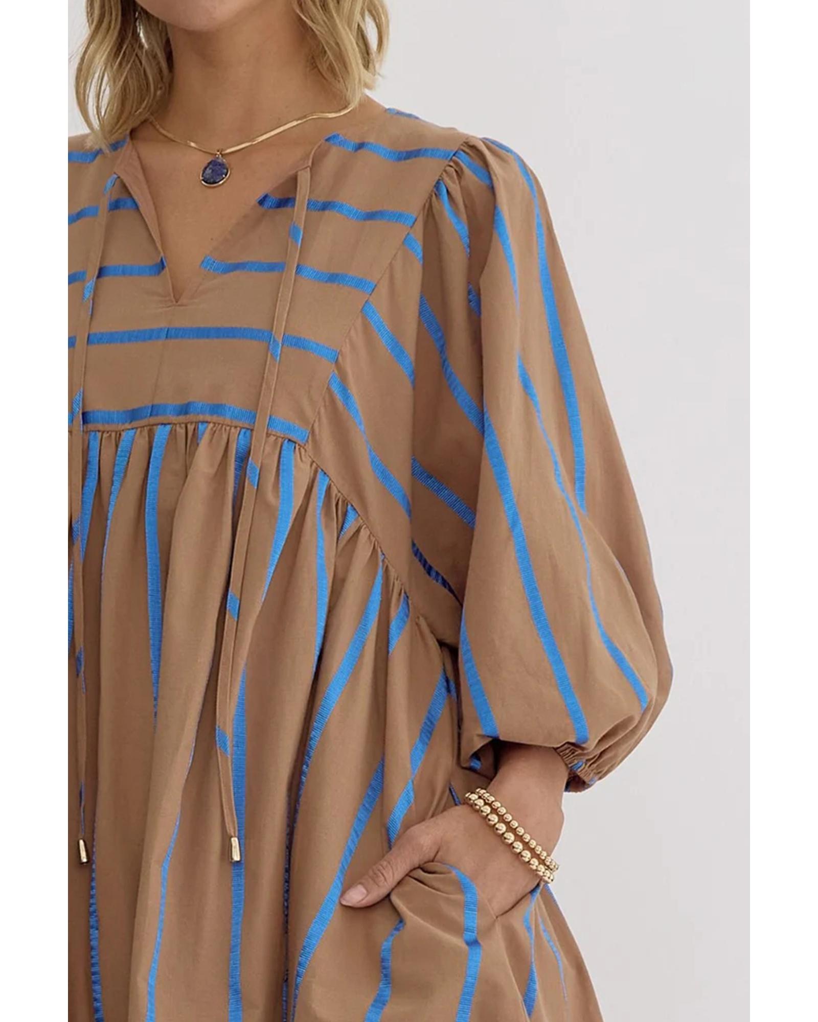 Khaki Stripe Contrast Striped Print 3/4 Sleeve Babydoll Plus Size Dress – 4X