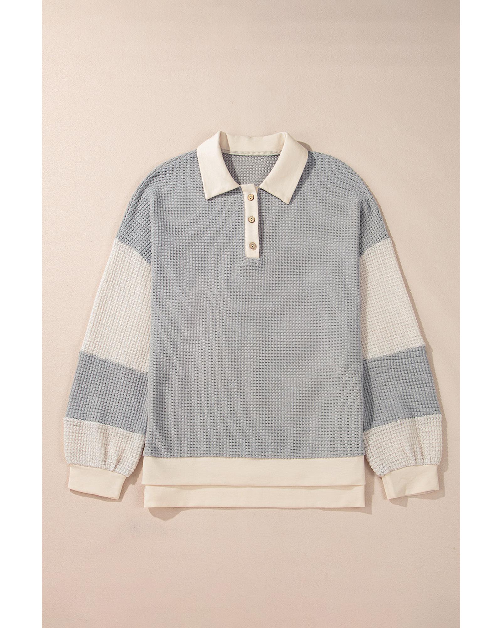 Mineral Blue Solid Waffle Knit Patchwork Raglan Sleeve Sweatshirt - L