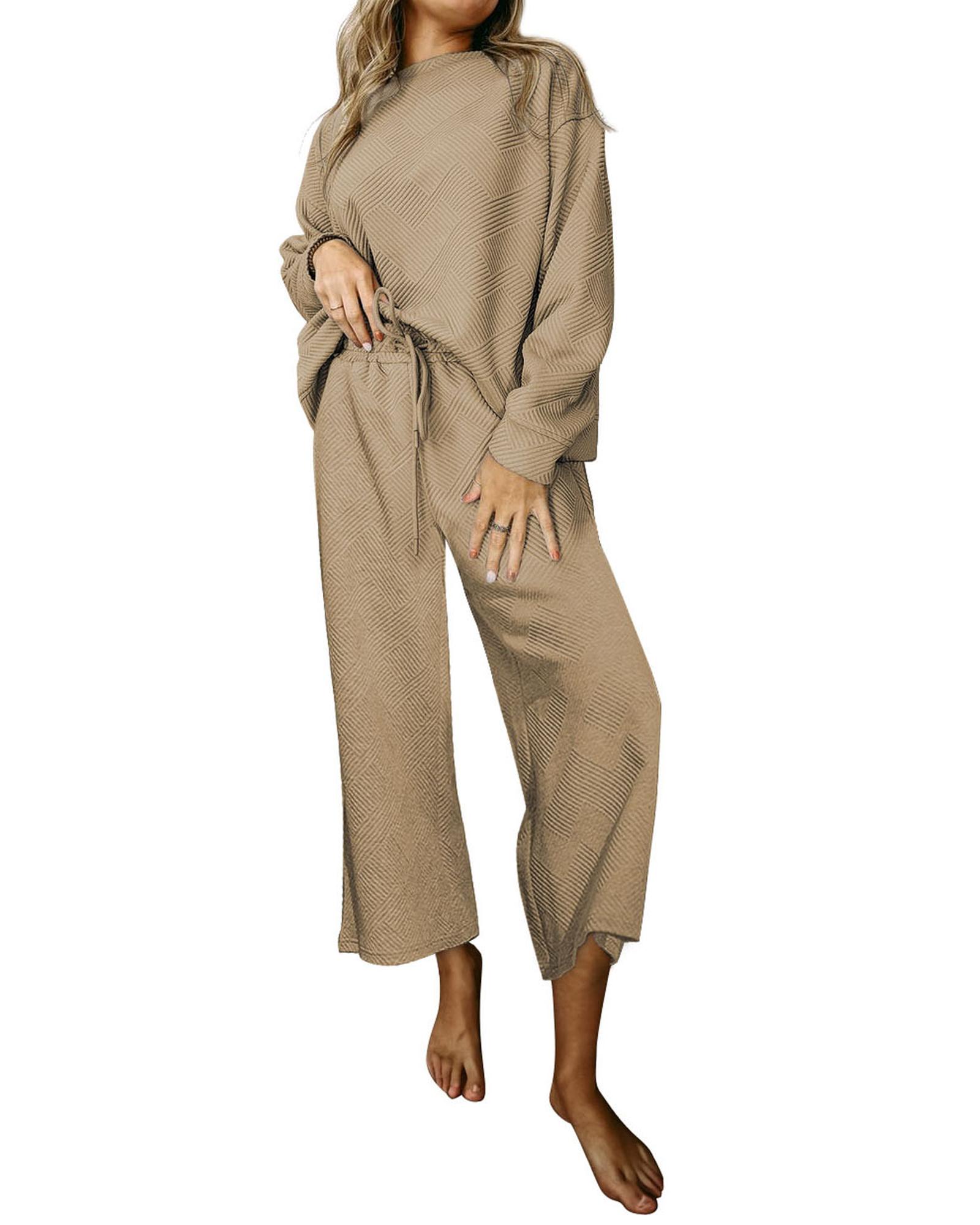 Khaki Ultra Loose Textured 2pcs Slouchy Outfit – S