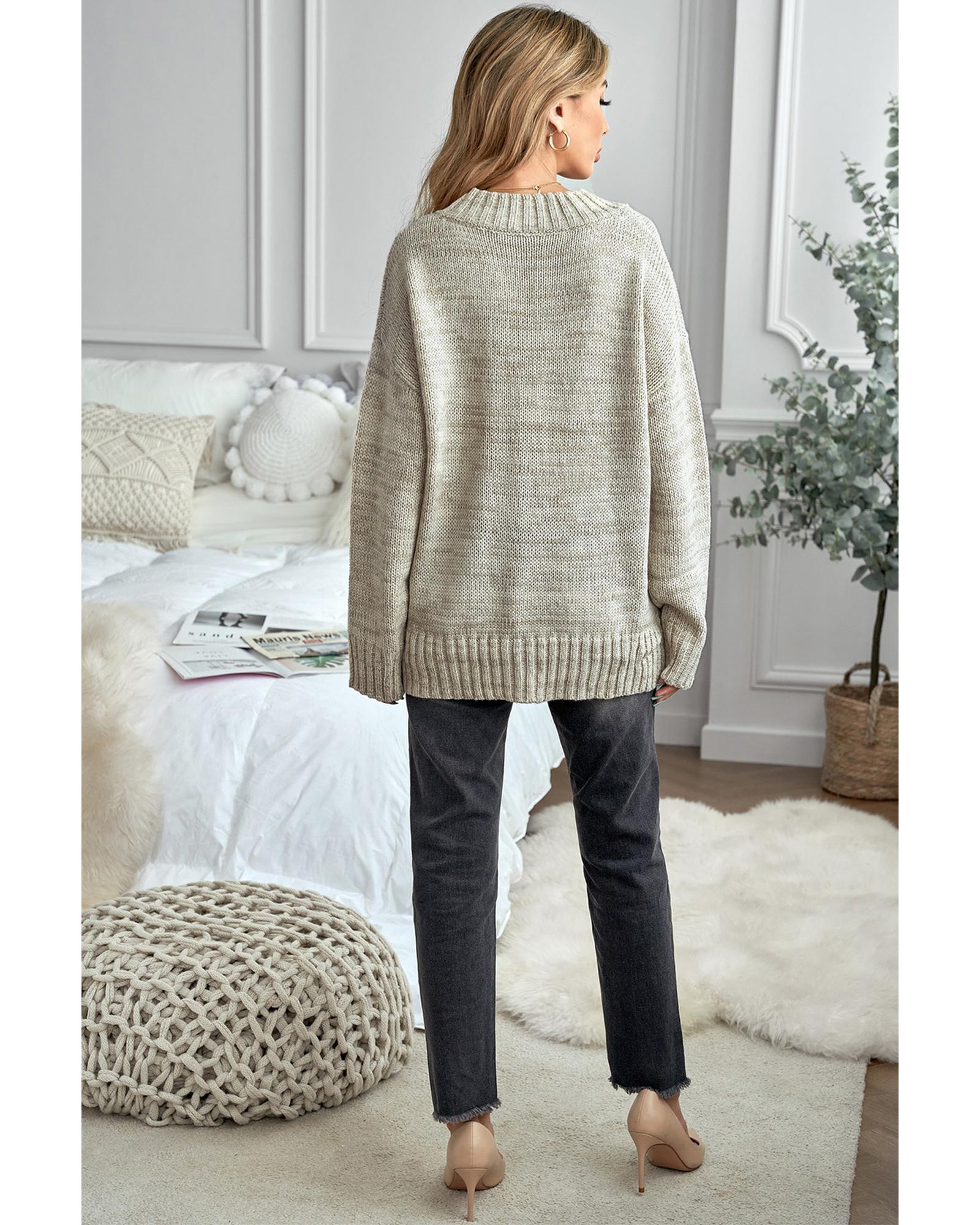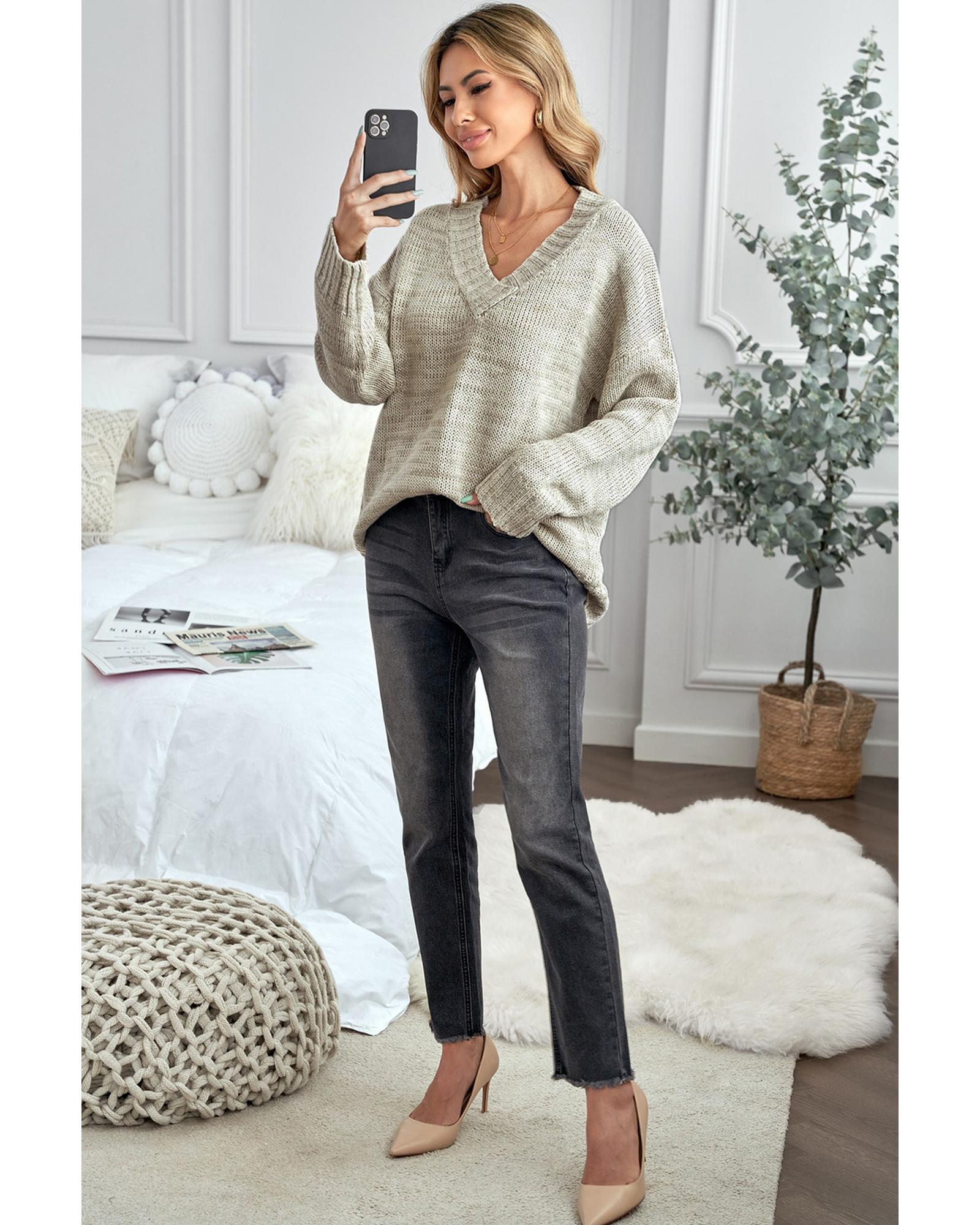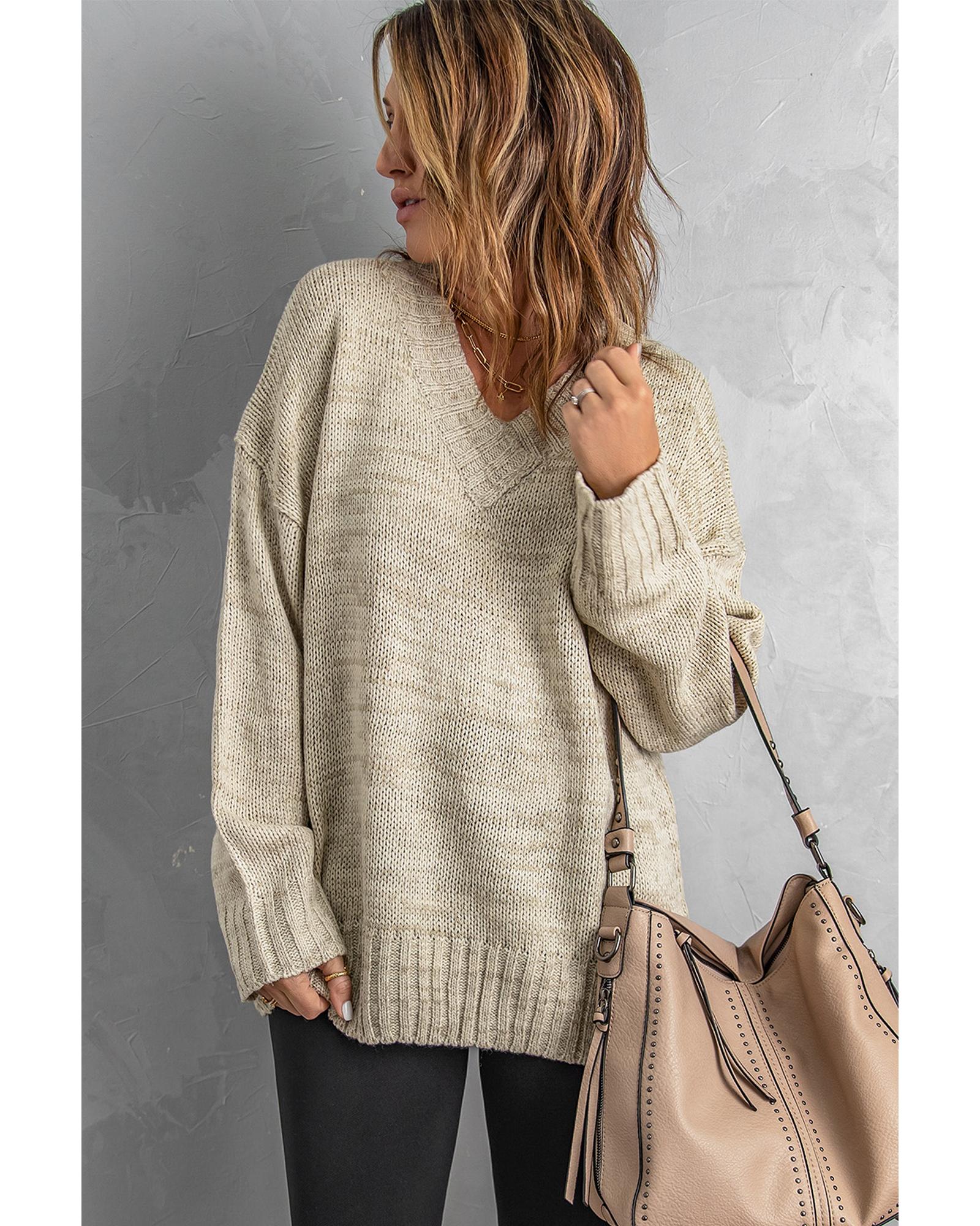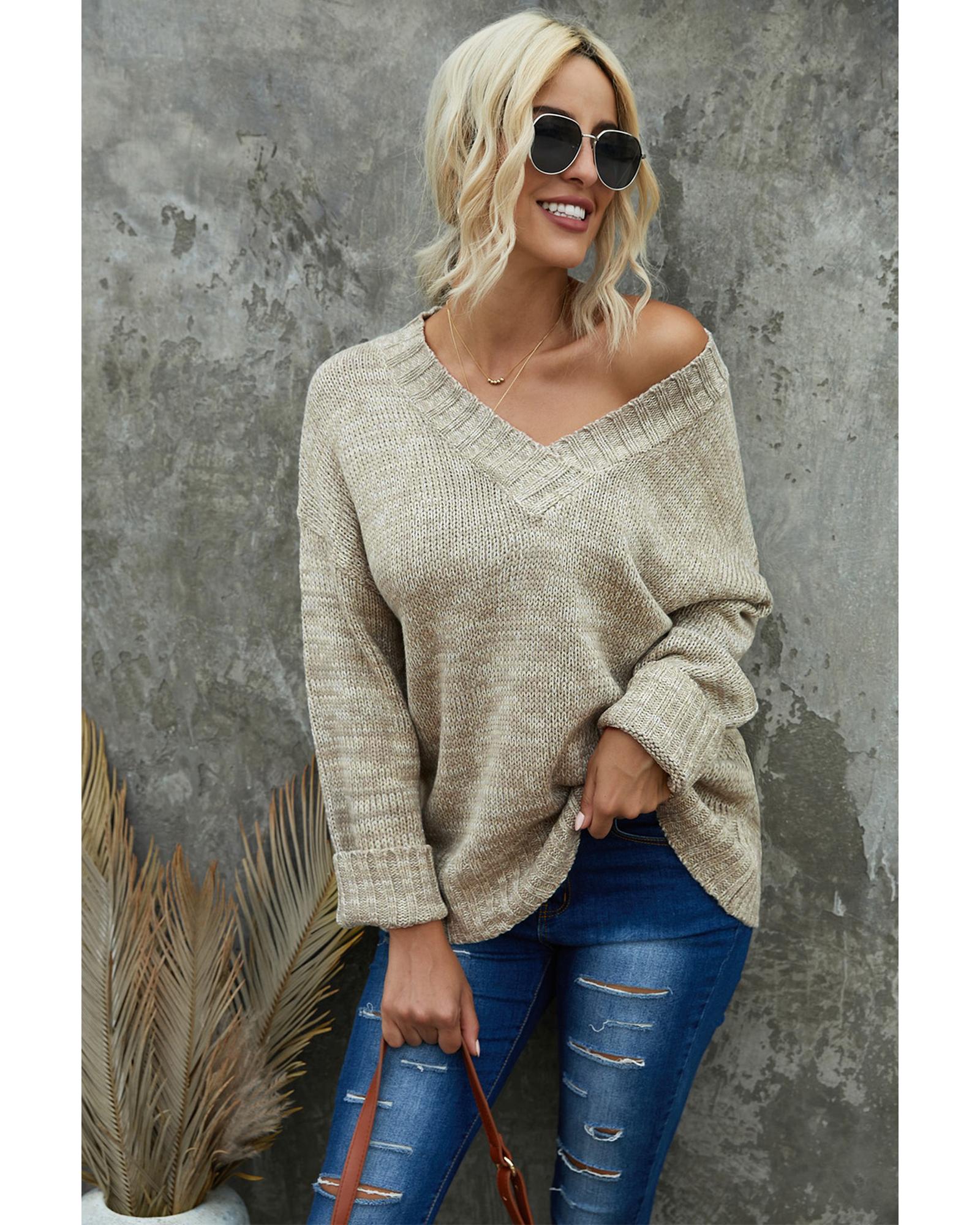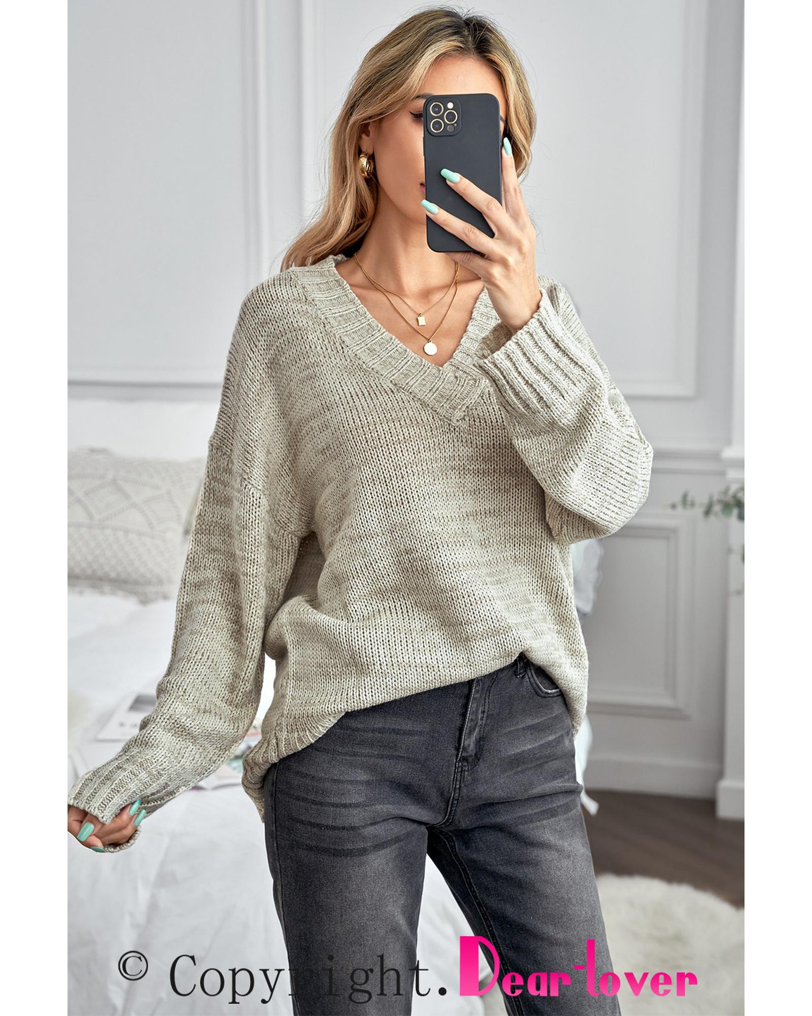 Khaki V neck Drop Shoulder Knitted Sweater – 2XL