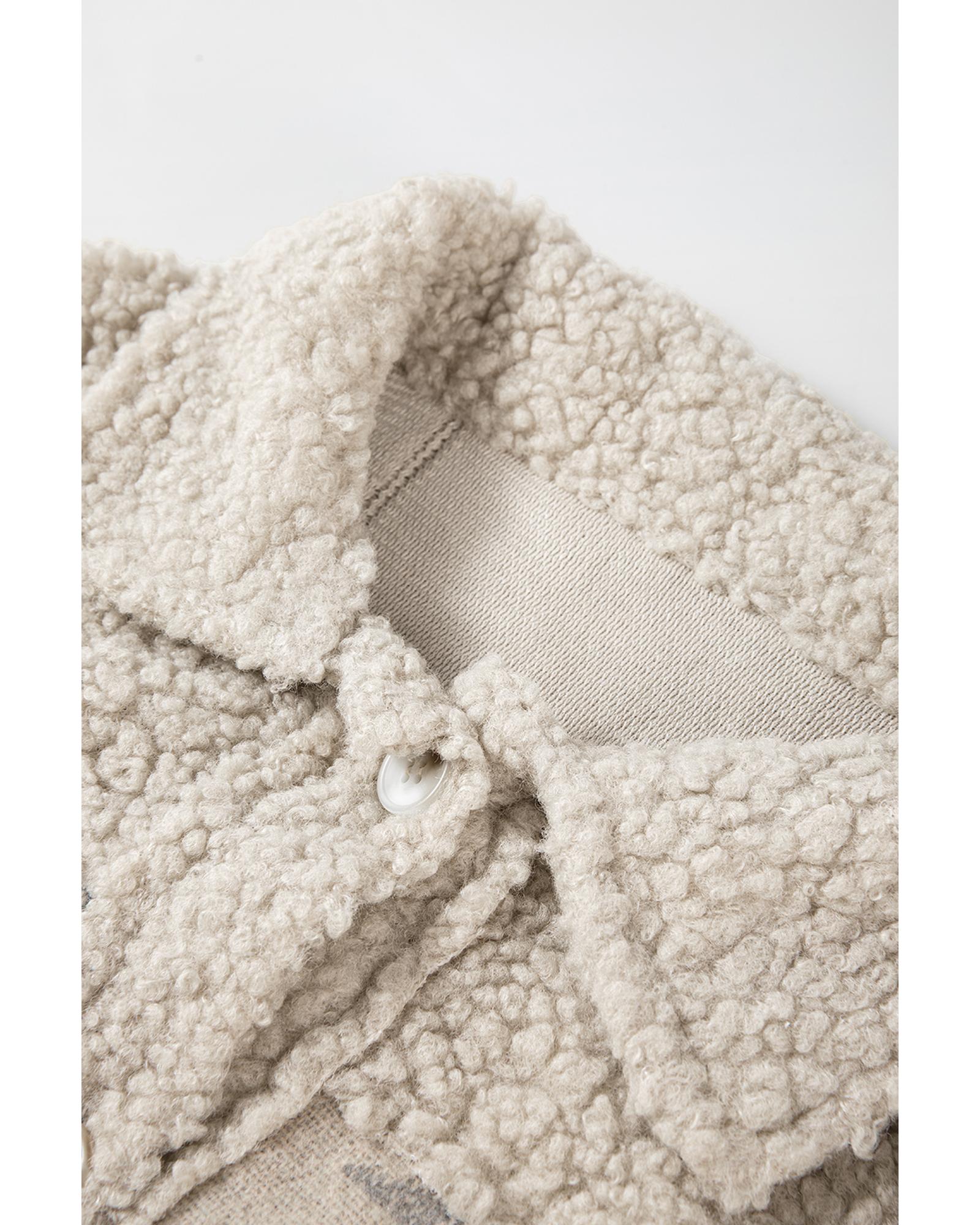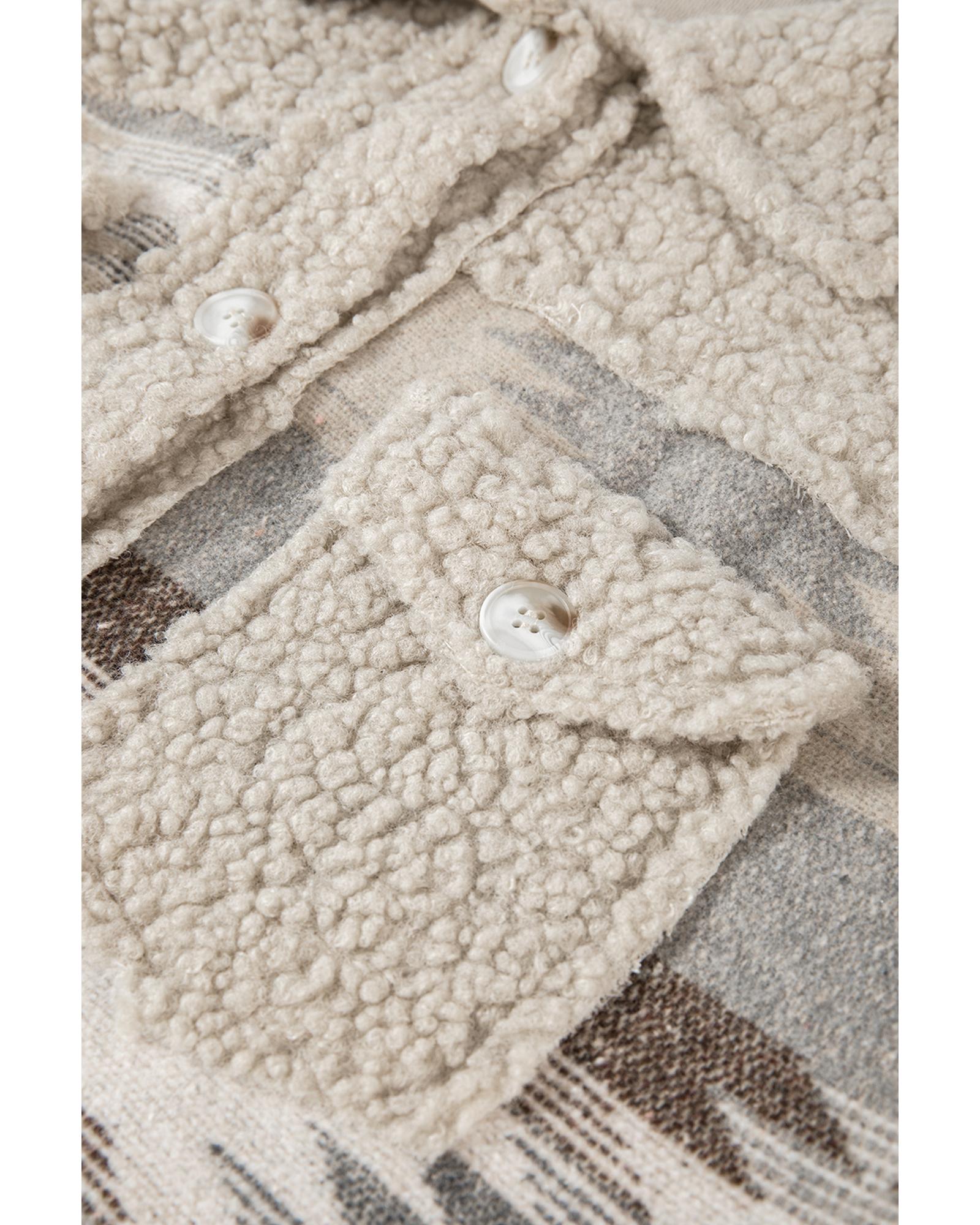 • Khaki Western Aztec Print Sherpa Splicing Buttoned Flap Pocket Coat