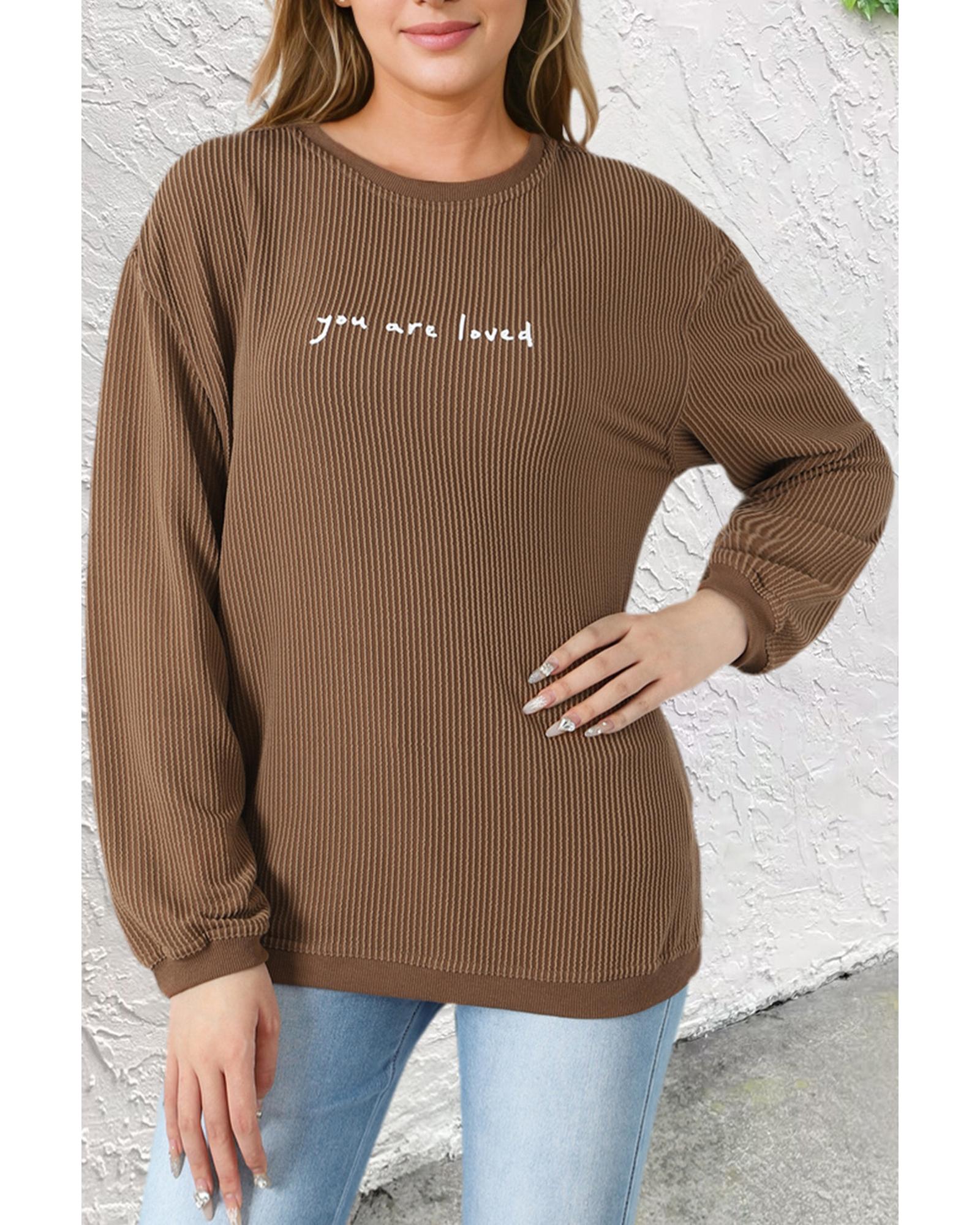 Khaki You Are Loved Print Corduroy Sweatshirt – M