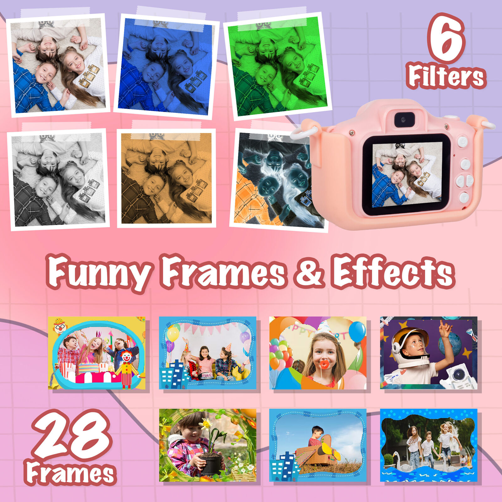Kids Digital Dual Lens Camera, 4x Zoom and HD Video Recording (Pink)