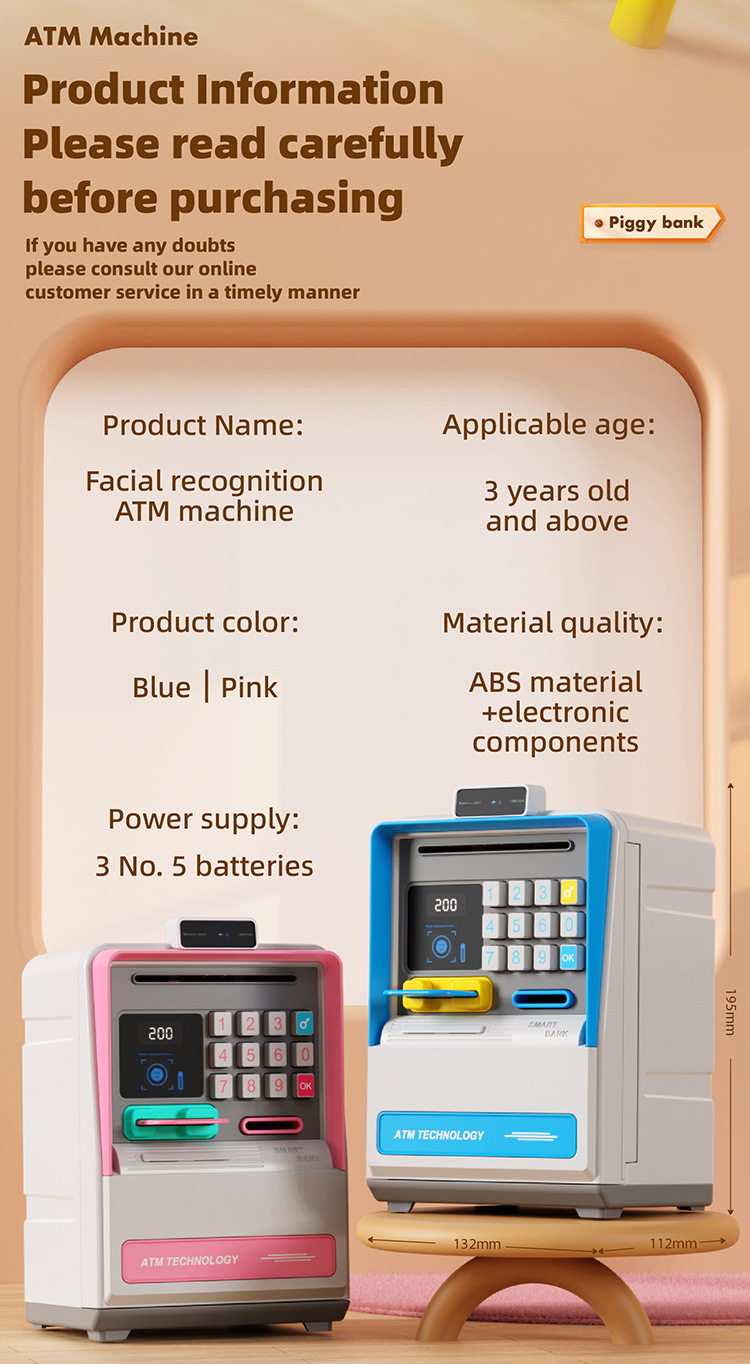 Introduce your children to the world of financial management with this cute and fun ATM Machine Piggy Bank. This thoughtful toy is designed as a “child financial manager” to help kids learn about saving money from an early age. It simulates real ATM operations, including card insertion, password entry, and even simulated facial recognition for a high-tech feel. With an automatic slot for paper money and a separate one for coins, saving becomes an exciting activity. The machine also features accompanying music and sound effects, making children fall in love with saving their money.