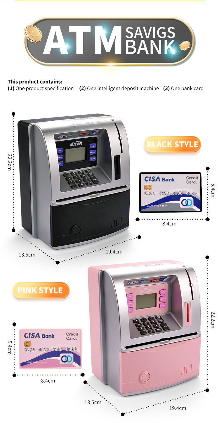 - Automatic Banknote Deposit: Feeds paper money into the machine automatically, just like a real ATM. It also has a separate slot for coins.