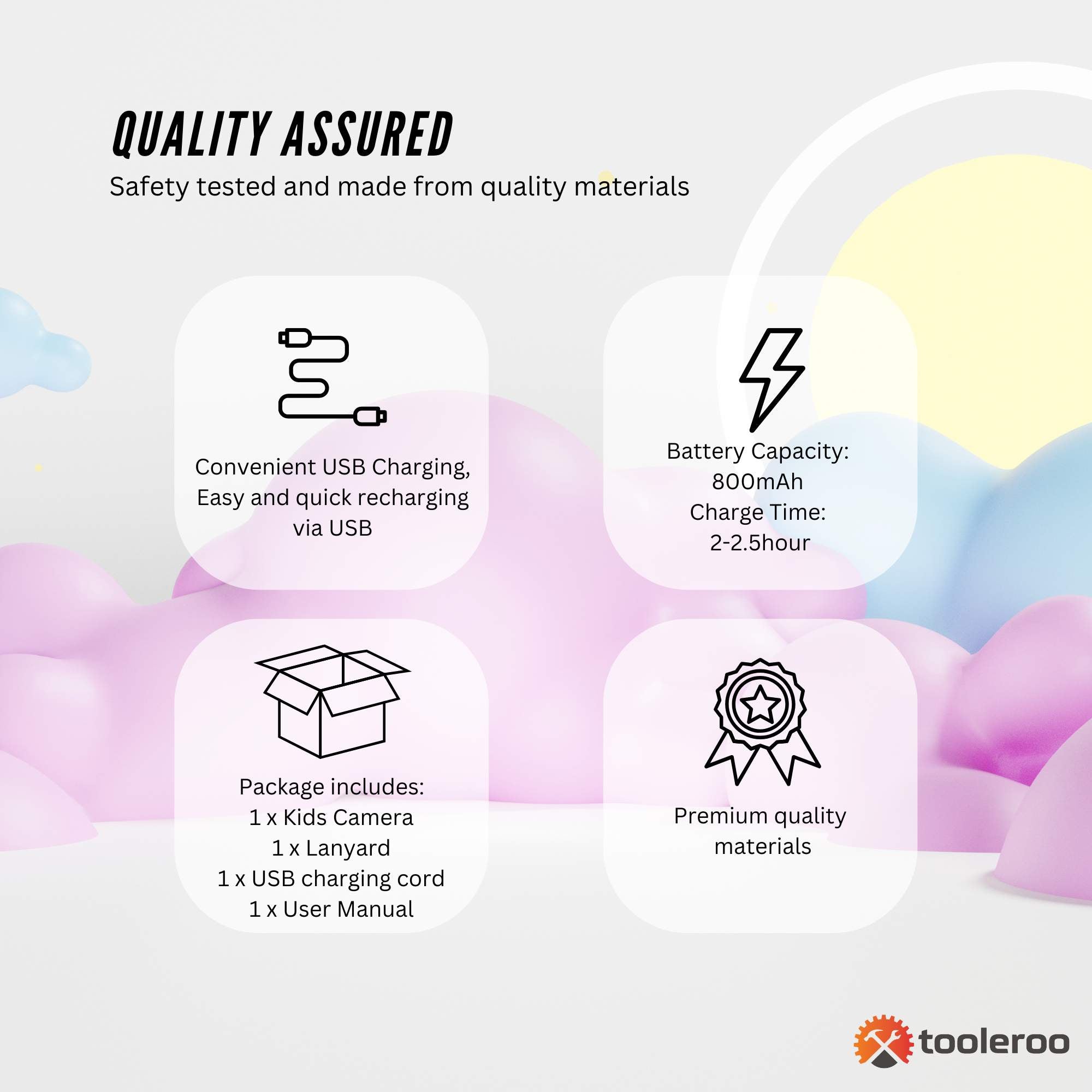 The camera boasts a fast charge time of just 2-2.5 hours, ensuring your child never has to wait long to get back to their photography adventures. Plus, with compatibility for 32GB SD cards, there’s plenty of room to store countless photos and videos.