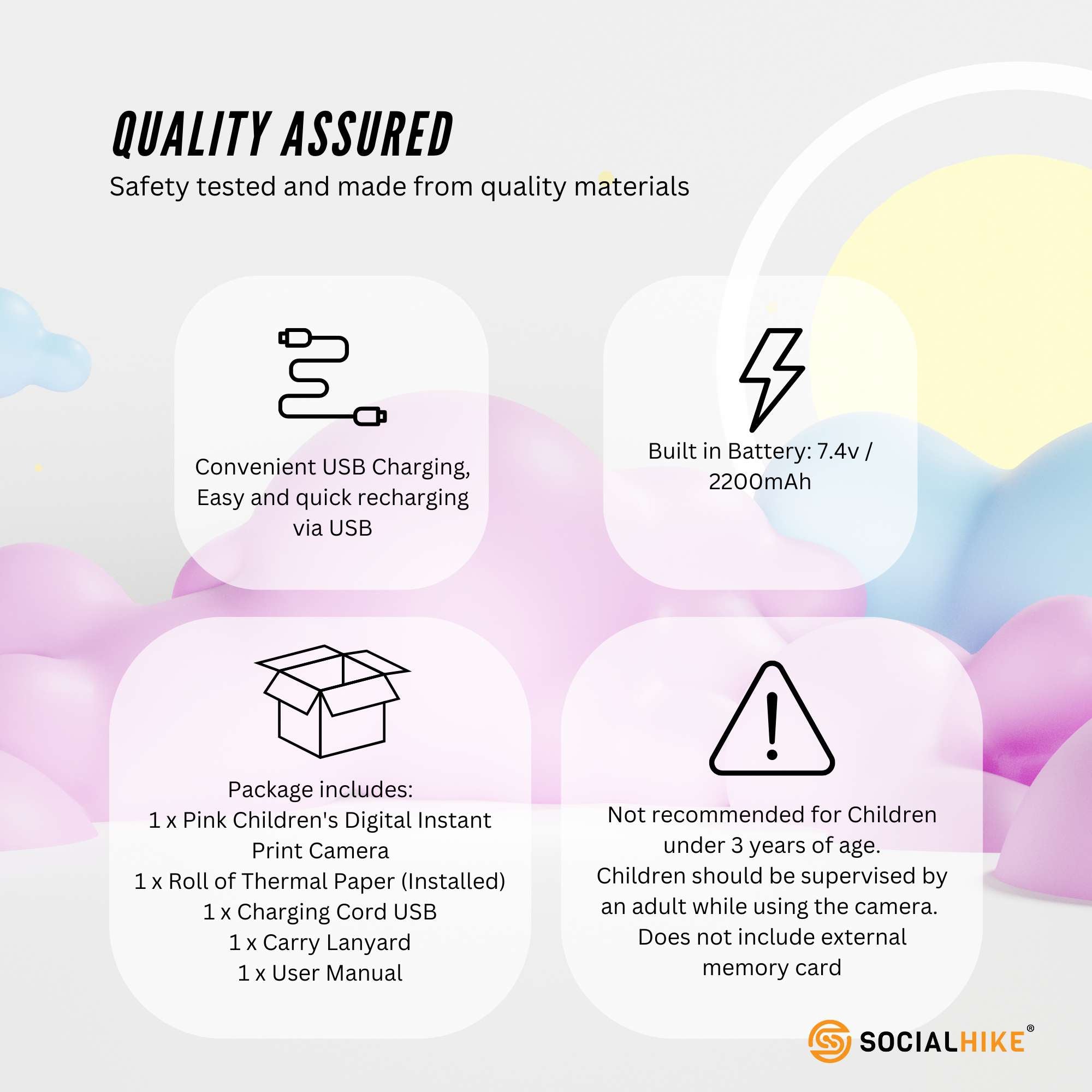 Looking for a fun and easy way to capture your child’s unforgettable moments? Our Social Hike Kids Instant Print Camera is the perfect solution! Designed with young photographers in mind, this camera is packed with exciting features that make photography a breeze and tons of fun.