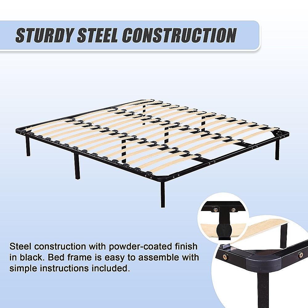 Simple and tasteful, and at a price that's right, the Steel King Bed Frame with Black Finish is where style meets sweet dreams.