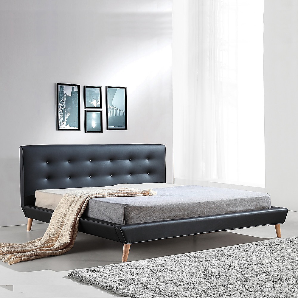 An exceptionally sturdy all-wood frame and support slats provide a rock-solid foundation for your mattress that will surely lead to many restful nights. The PU Leather covering is similarly durable, not to mention easy to clean. The frame is designed to accommodate standard King-sized mattresses with dimensions of 183 x 203 cm (mattress and linens not included). The headboard is 99 cm tall (15cm leg 84cm headboard) from top to bottom, and the overall dimensions of the bed frame are 206 cm x 205 cm.